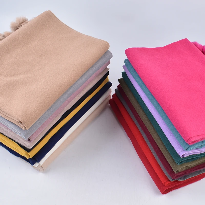 Autunno e inverno nuova palla di pelo di coniglio morbida sciarpa lunga scialle di colore solido di media lunghezza da donna