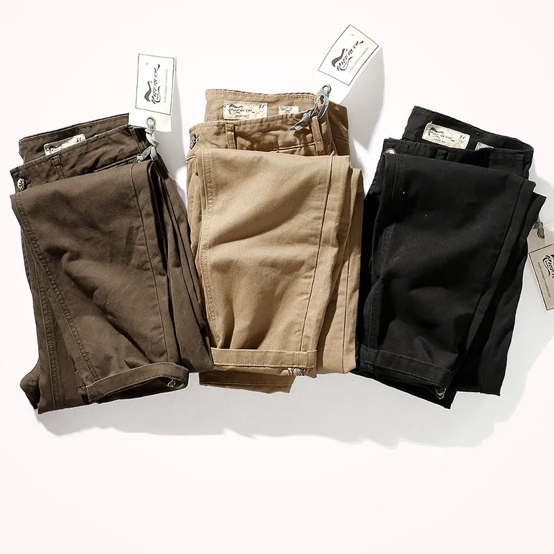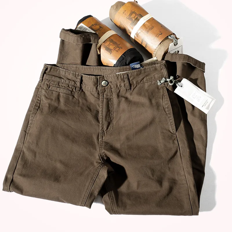 Autunno e inverno nuovi pantaloni Casual in Twill intrecciato pesante retrò americano da uomo in puro cotone lavato vecchi pantaloni affusolati dritti 1Autunno e inverno nuovi pantaloni Casual in Twill intrecciato pesante retrò americano da uomo in puro cotone lavato vecchi pantaloni affusolati dritti