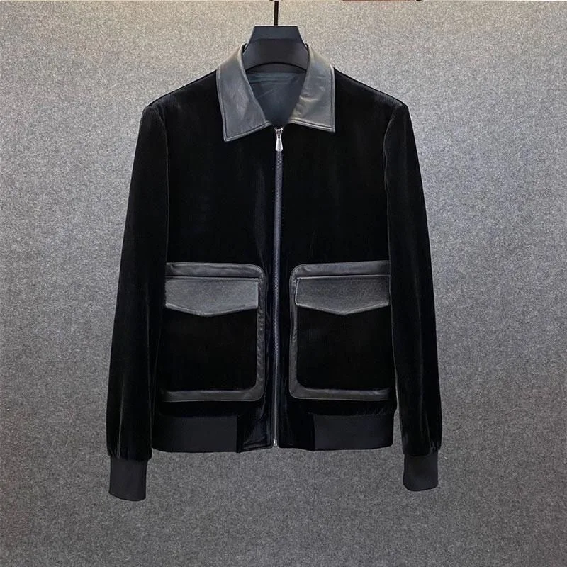 Giacca da uomo in pelle Autunno Inverno Giacche autentiche Abbigliamento da uomo Cappotti lunghi e caldi in peluche Trench frangivento moda casual
