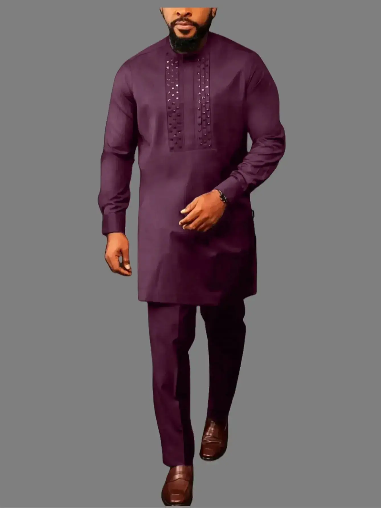 Autunno e inverno nuovo abito da uomo caftano stile africano a maniche lunghe semplice abito da uomo in 2 pezzi abbigliamento per le vacanze di nozze