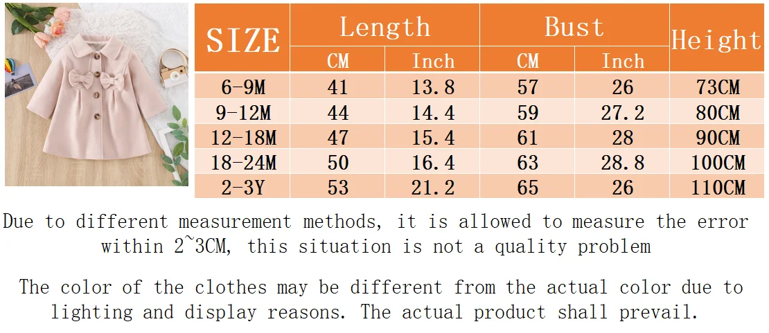 Autunno e inverno nuovo cappotto da bambina in stile coreano per vestiti a maniche lunghe per bambini con fiocco beige per 6 mesi-3 anni)