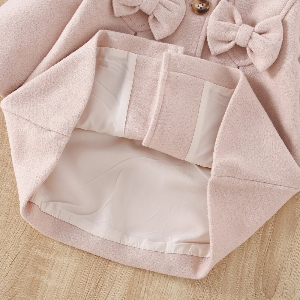 Autunno e inverno nuovo cappotto da bambina in stile coreano per vestiti a maniche lunghe per bambini con fiocco beige per 6 mesi-3 anni)