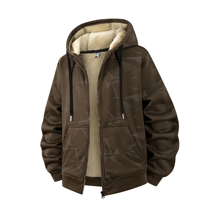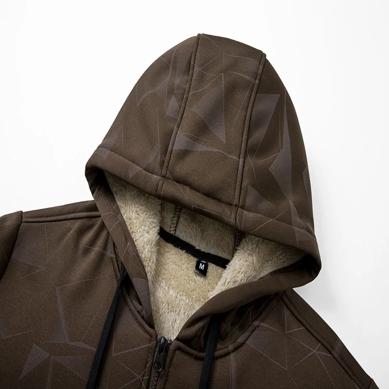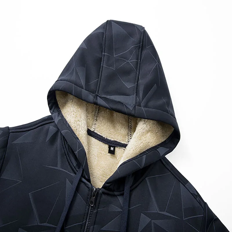 Autunno e inverno nuovo cappotto in pile di agnello stampa alla moda da uomo con felpa con cappuccio in pile spesso