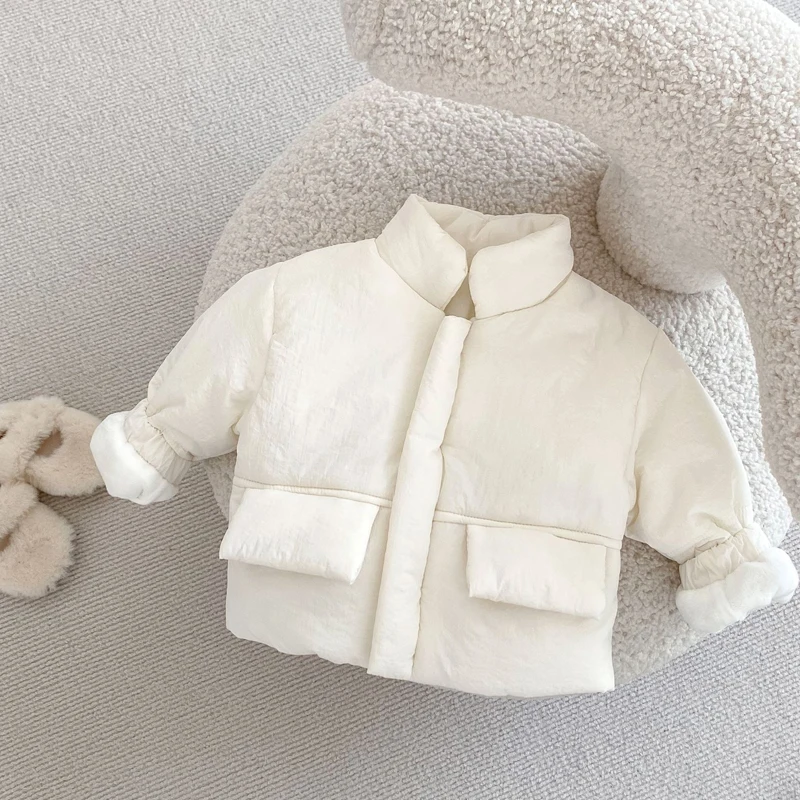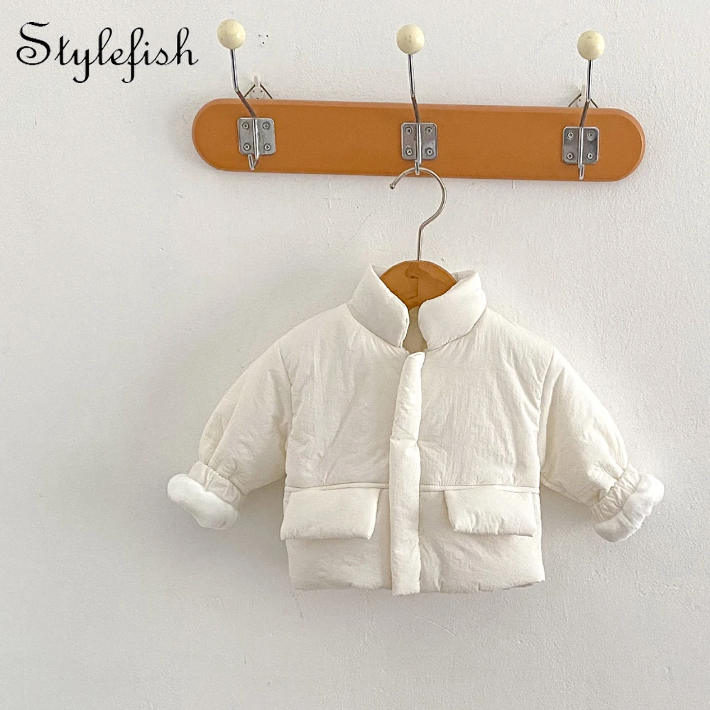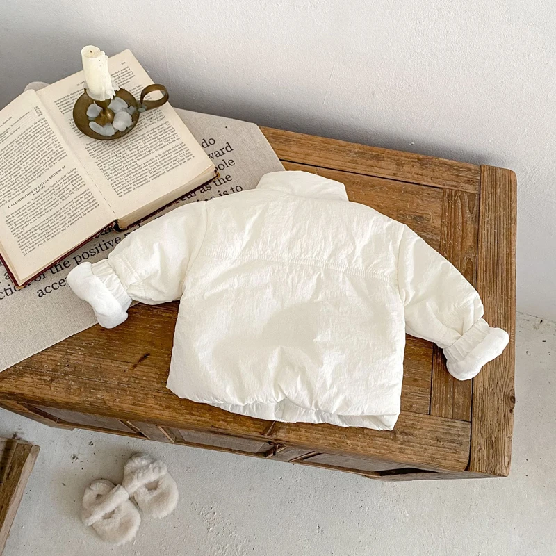 Autunno e inverno nuovo stile 0-3 anni vestiti per bambini per neonate e ragazzi cappotto con colletto alla coreana in velluto tinta unita spesso
