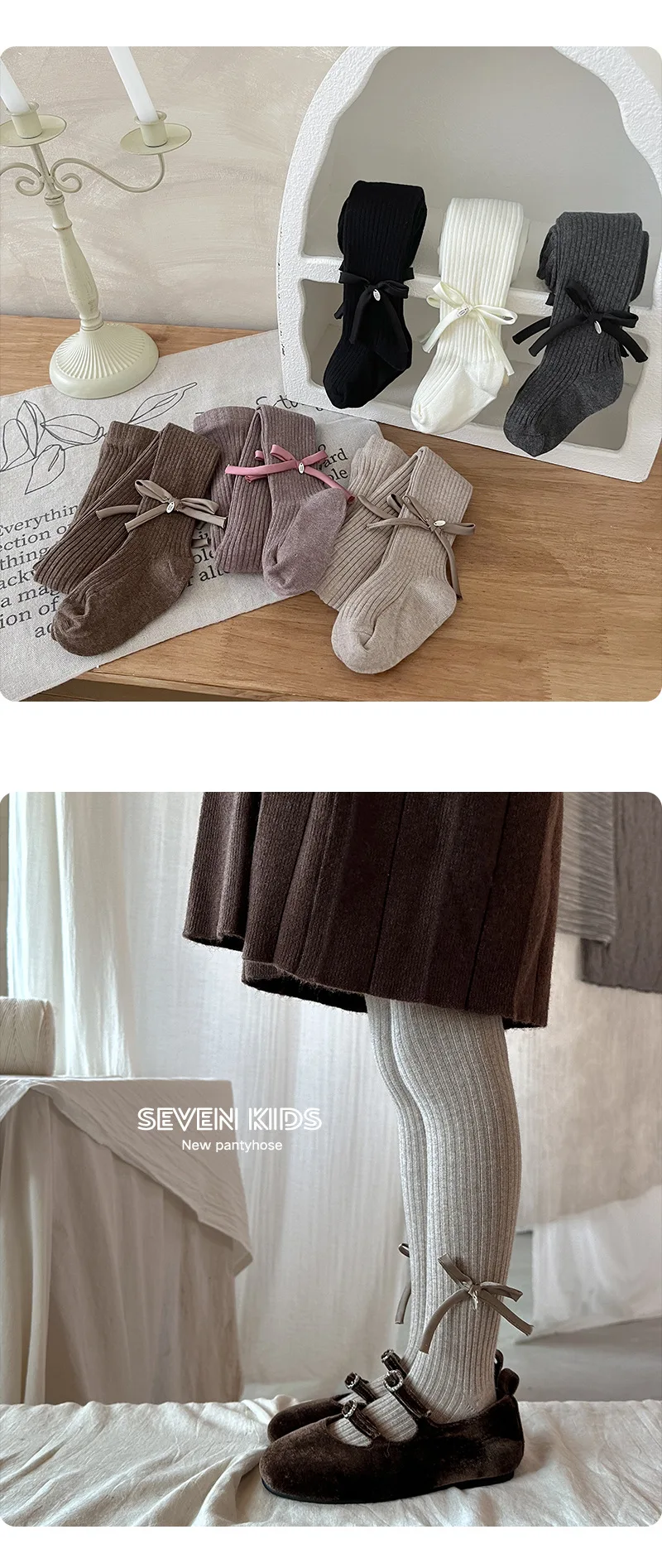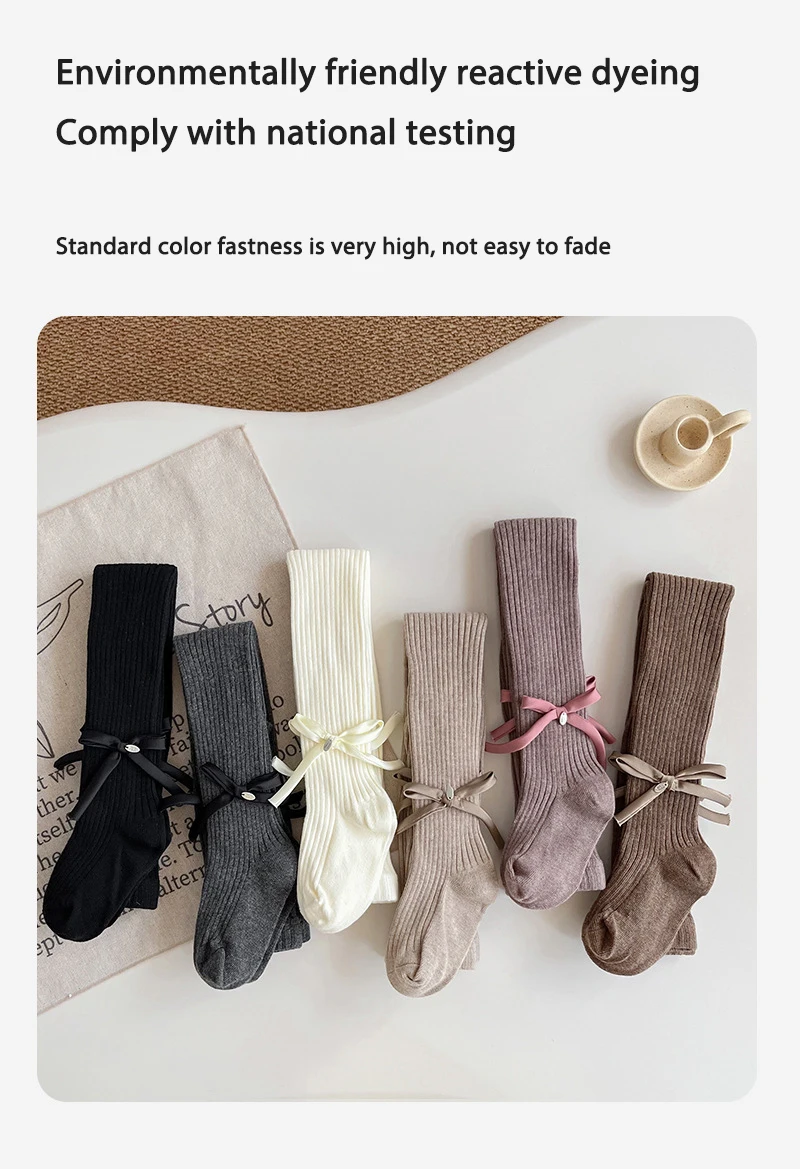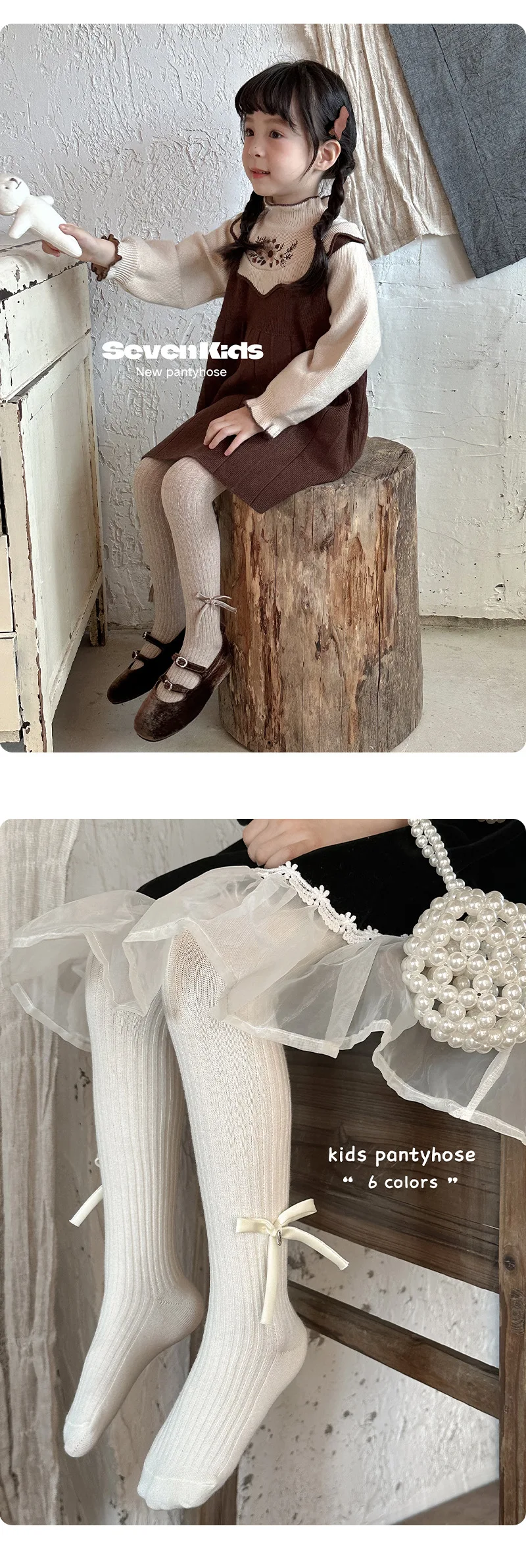 1 recensione per Autunno Grils Leggings Fiocco lavorato a maglia Collant per bambini per ragazze Tinta unita Bambini Fondo Bambino Kid Ragazza Calze a costine