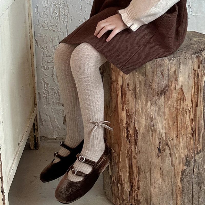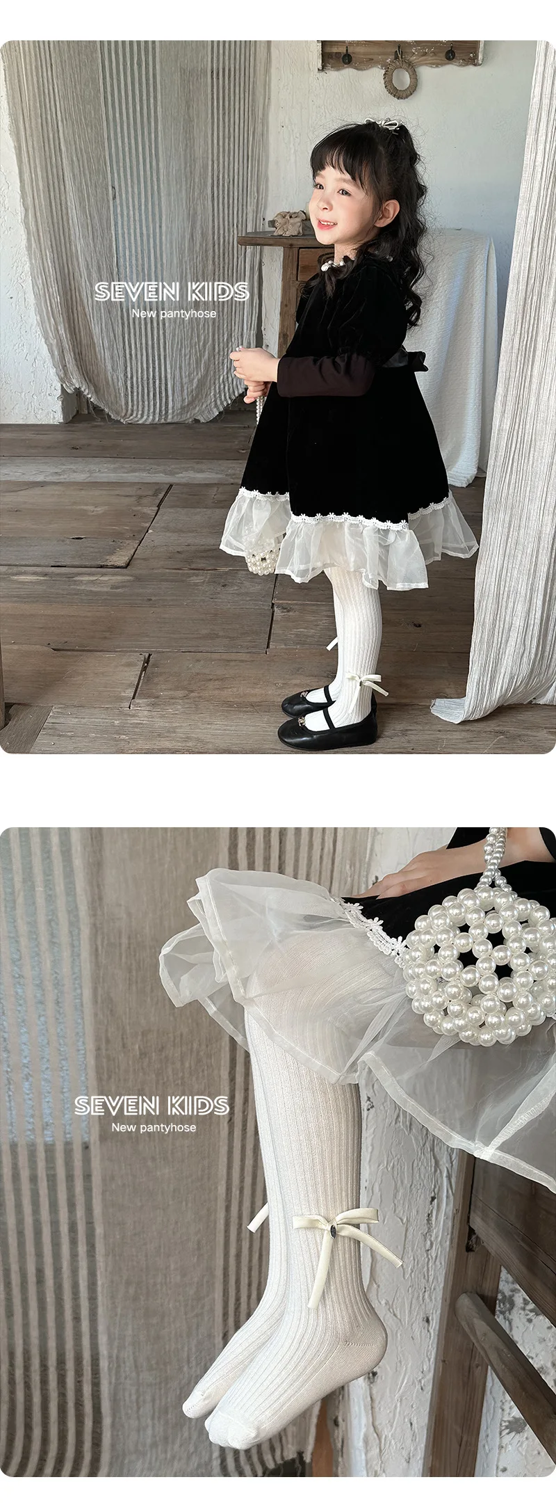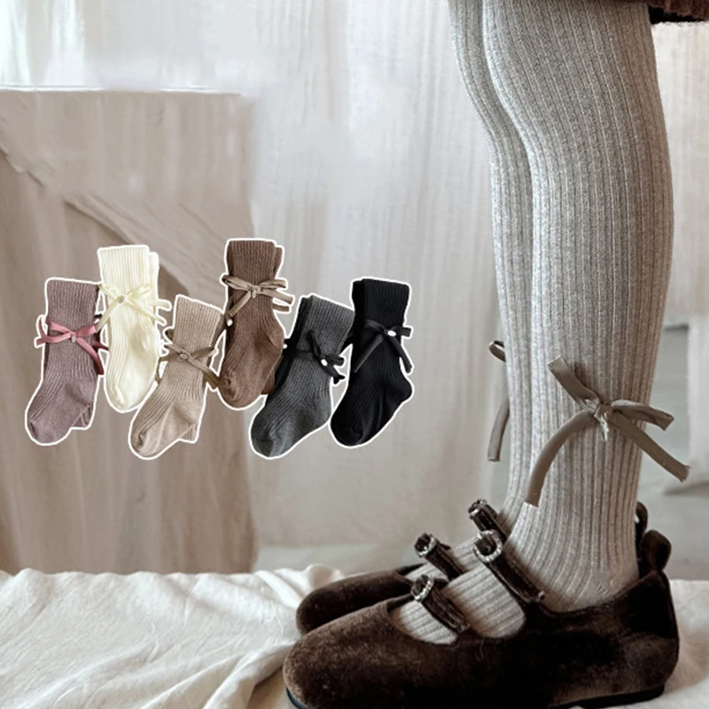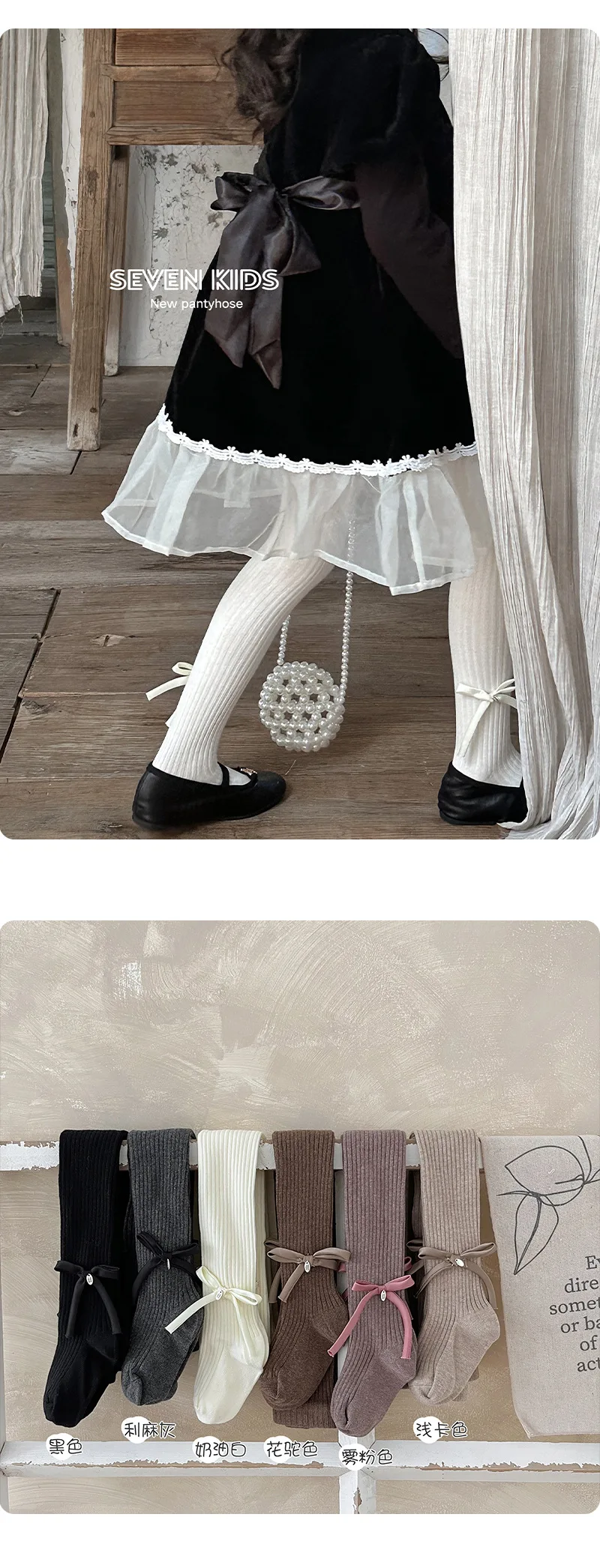 1 recensione per Autunno Grils Leggings Fiocco lavorato a maglia Collant per bambini per ragazze Tinta unita Bambini Fondo Bambino Kid Ragazza Calze a costine