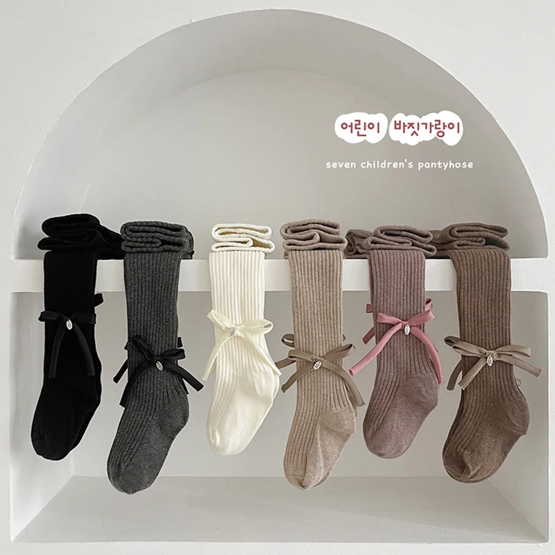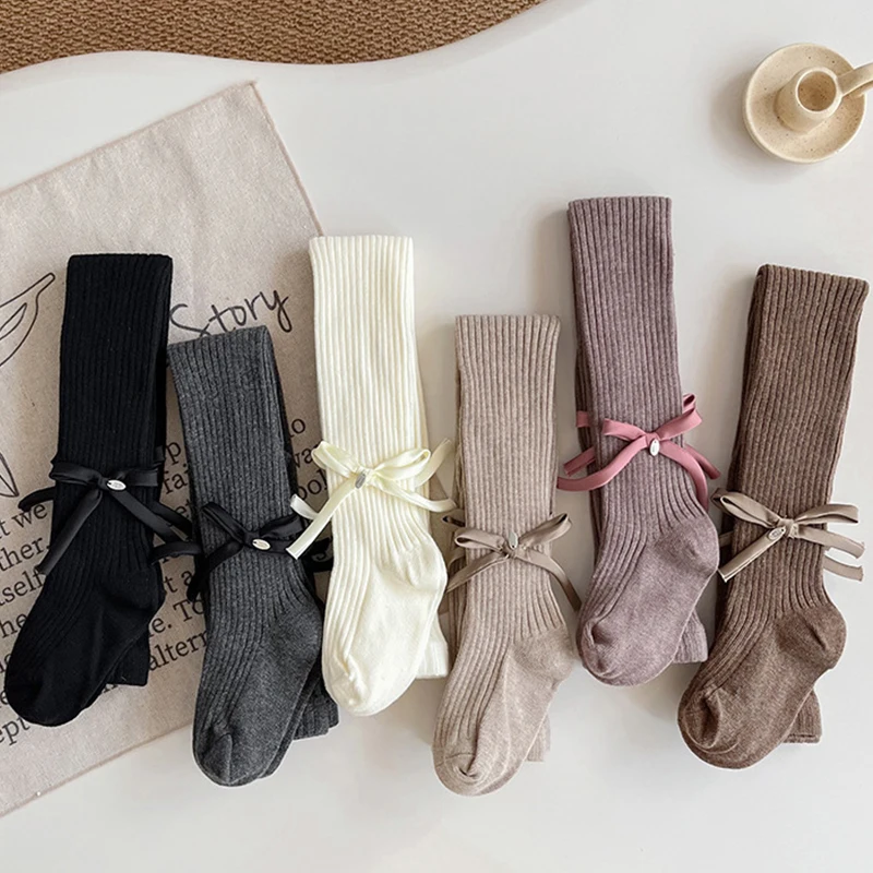 Autunno Grils Leggings Fiocco lavorato a maglia Collant per bambini per ragazze Tinta unita Bambini Fondo Bambino Kid Ragazza Calze a costine