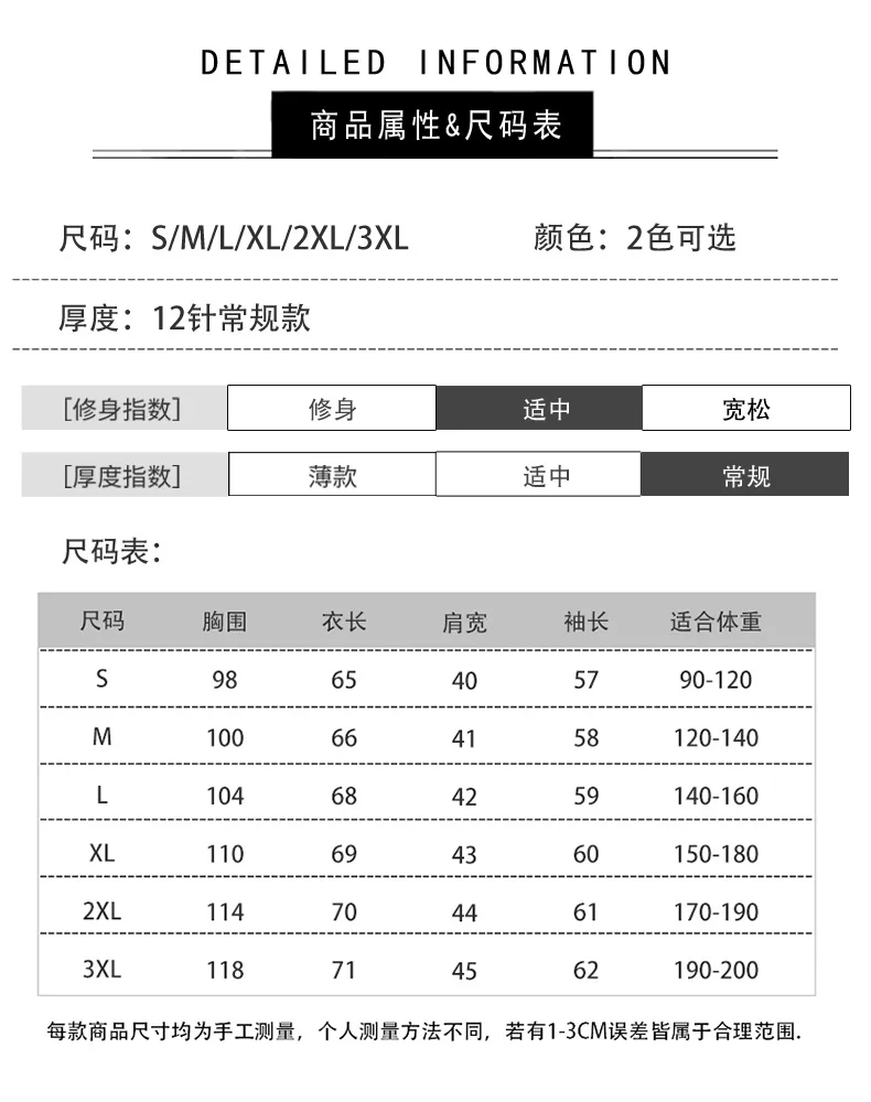 * Tessuto spesso calibro 12, spessore medio. Vestibilità normale, design del cavo con collo mezzo alto a maniche lunghe, stile casual.