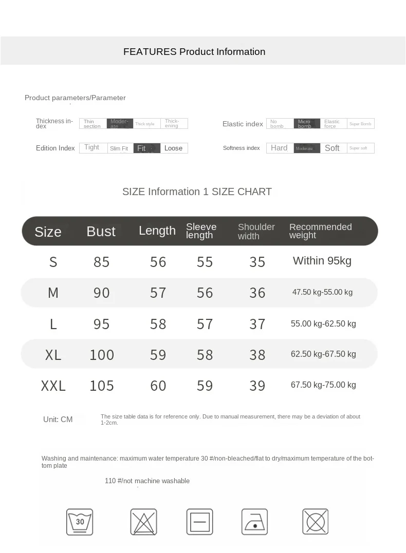 Taglia consigliata!S circonferenza torace 85 cm, lunghezza abbigliamento 56 cm, lunghezza manica 55 cm, larghezza spalle 35 cmM circonferenza torace 90 cm, lunghezza abbigliamento 57 cm, lunghezza manica 56 cm, larghezza spalle 36 cmL circonferenza torace 95 cm, lunghezza abbigliamento 58 cm, lunghezza manica 57 cm, larghezza spalle 37 cmCirconferenza busto XL 100 cm, lunghezza indumento 59 cm, lunghezza manica 58 cm, larghezza spalle 38 cmCirconferenza busto XXL 105 cm, lunghezza indumento 60 cm, lunghezza manica 59 cm, larghezza spalle 39 cm