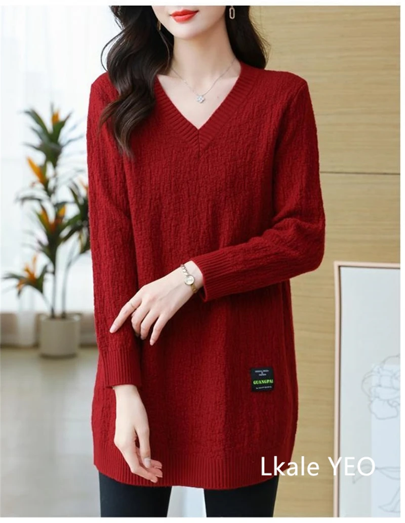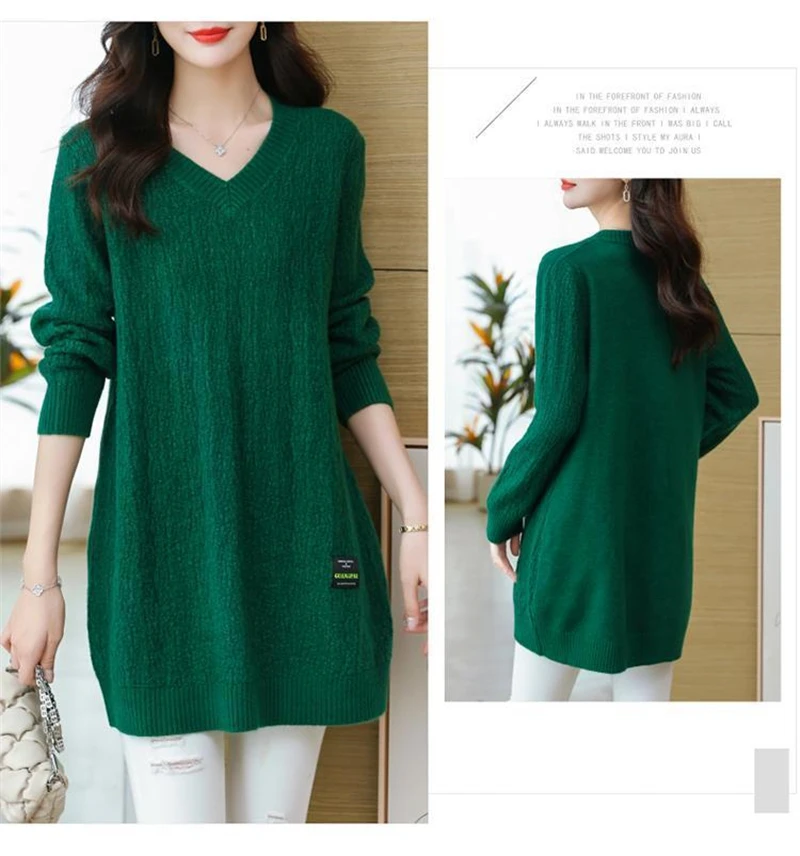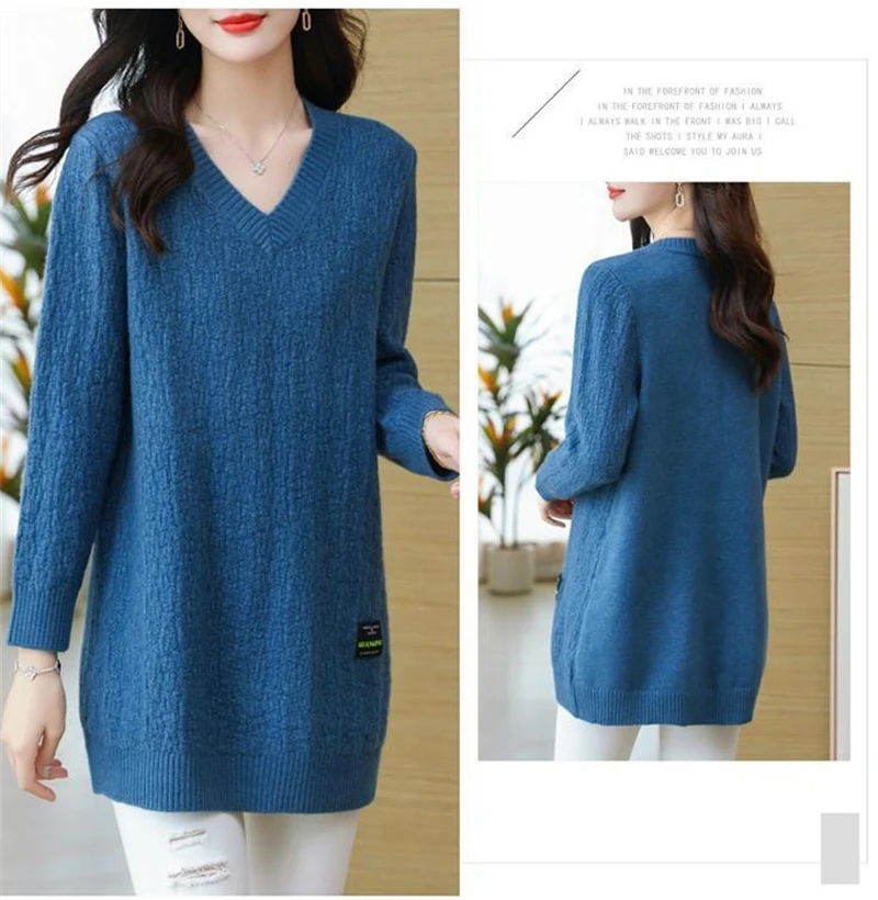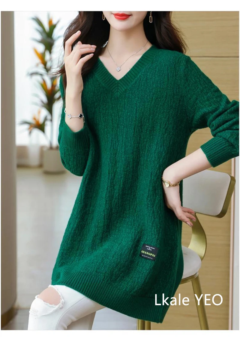 Autunno/Inverno 2025 Stili medi e lunghi Scollo a V Maglia da donna Pullover Maglione Moda Splicing Allentato Top da donna che tocca il fondo