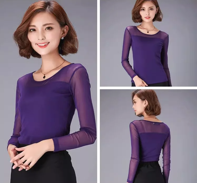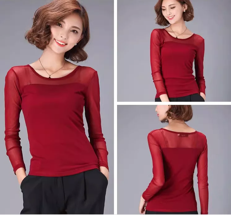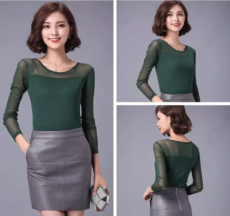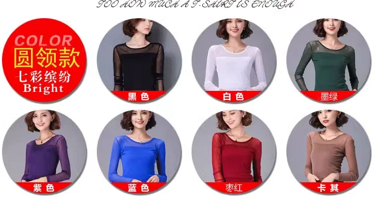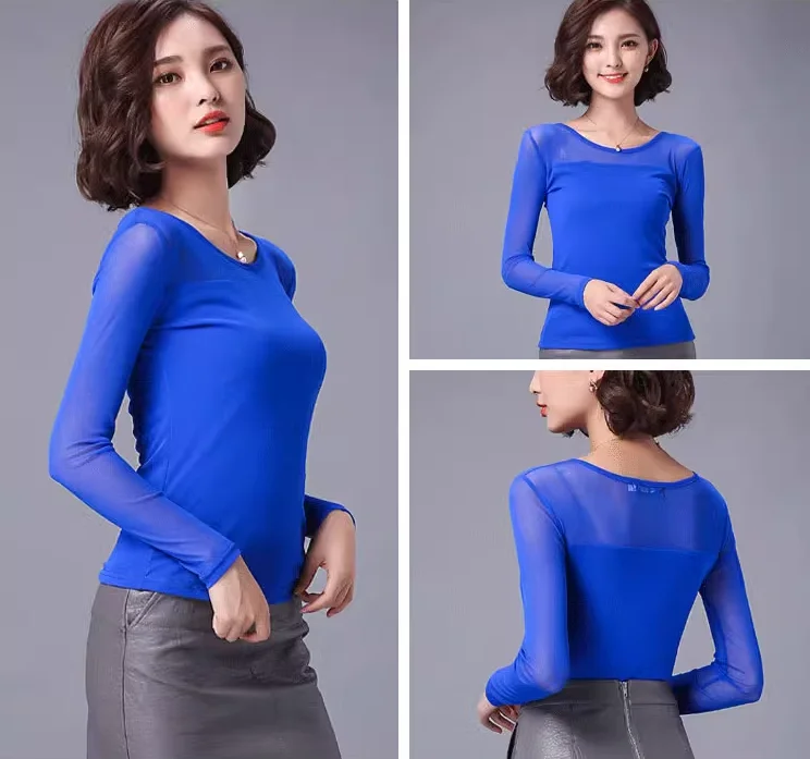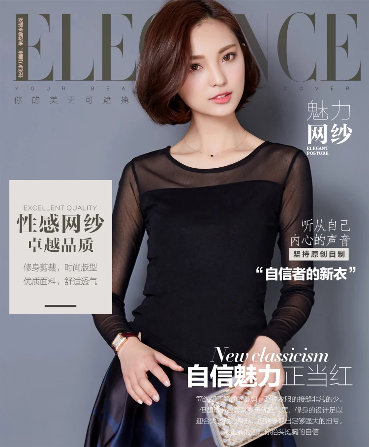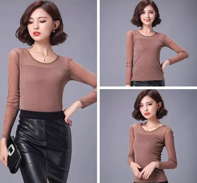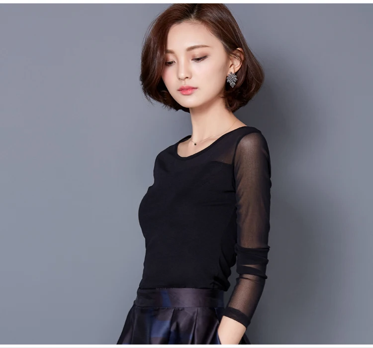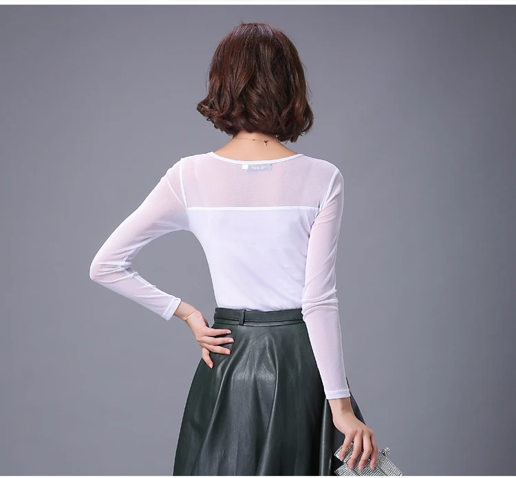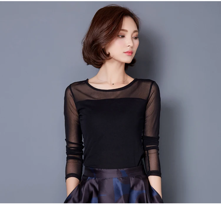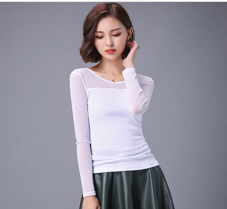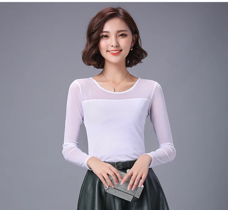 Autunno Inverno Camicia con fondo bianco nero Girocollo T-shirt in rete solida Top da donna alla moda coreana 1Autunno Inverno Camicia con fondo bianco nero Girocollo T-shirt in rete solida Top da donna alla moda coreana