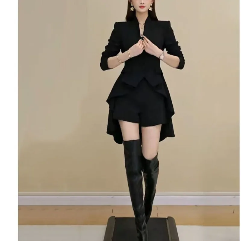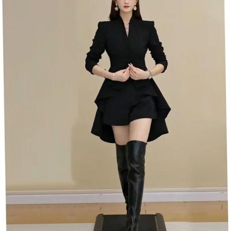 Autunno inverno delle donne nuovo elegante alla moda con scollo a v a maniche lunghe tinta unita Casual Versatile vestito giovanile da pendolarismo straniero