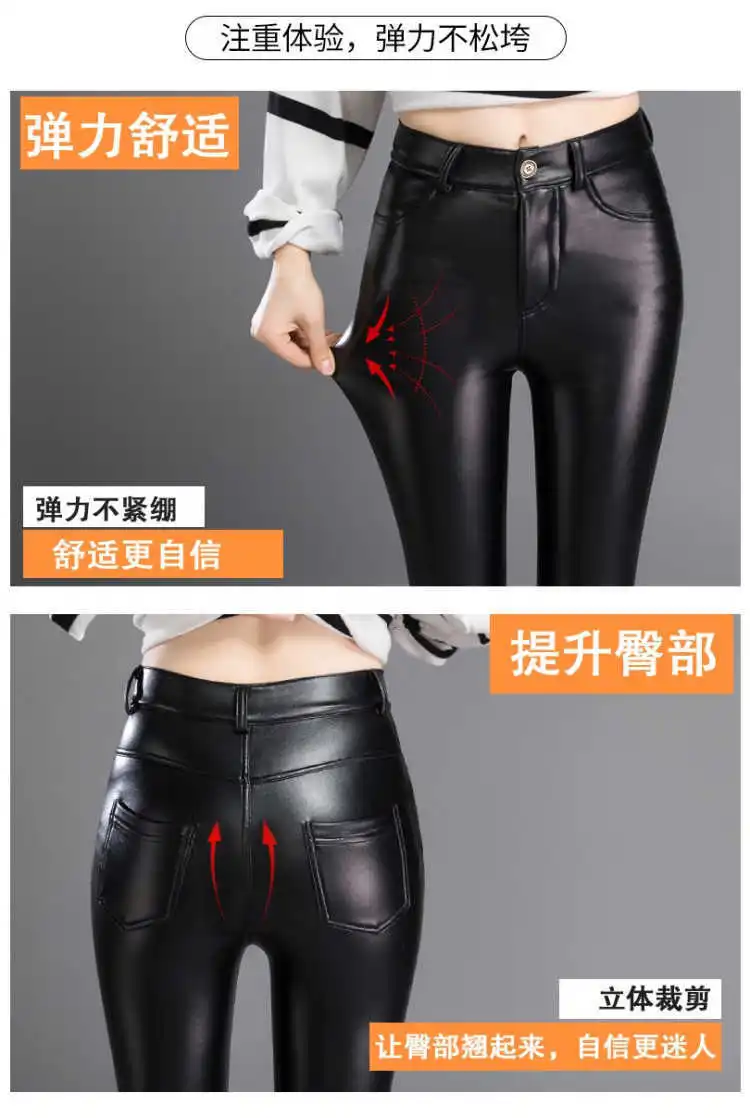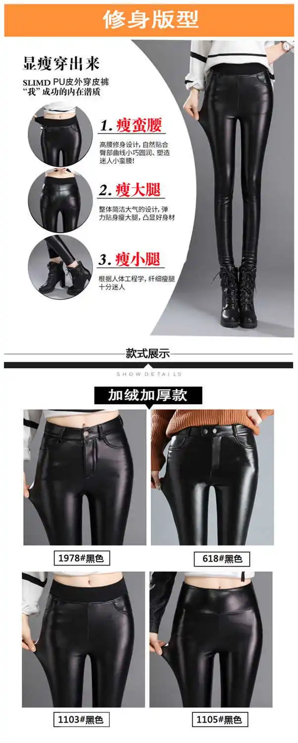 Autunno inverno donna pantaloni in pelle pantaloni lucidi elastici alti pantaloni slim in pelle a matita femminile pantalon femme clothe