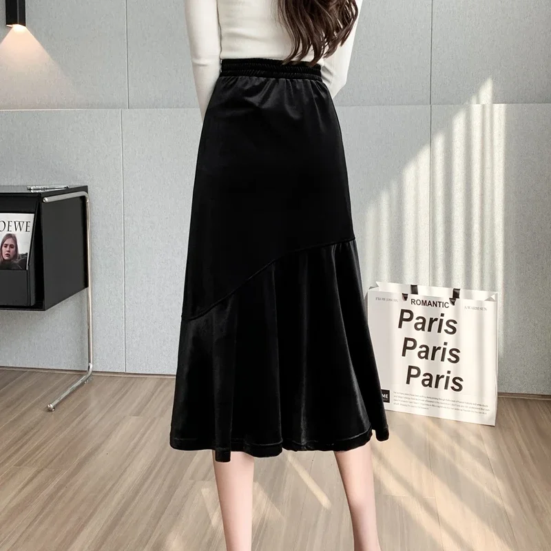 Autunno Inverno Gonne nere di media lunghezza Donna Elegante Fahsion Elastico in vita Faldas Casual Coreano Una linea di velluto Gonna longuette Harajuku 1Autunno Inverno Gonne nere di media lunghezza Donna Elegante Fahsion Elastico in vita Faldas Casual Coreano Una linea di velluto Gonna longuette Harajuku