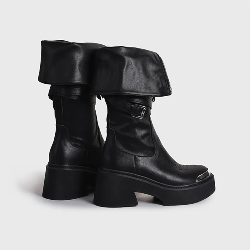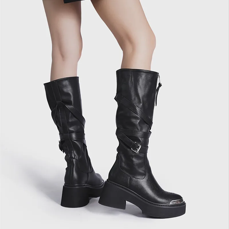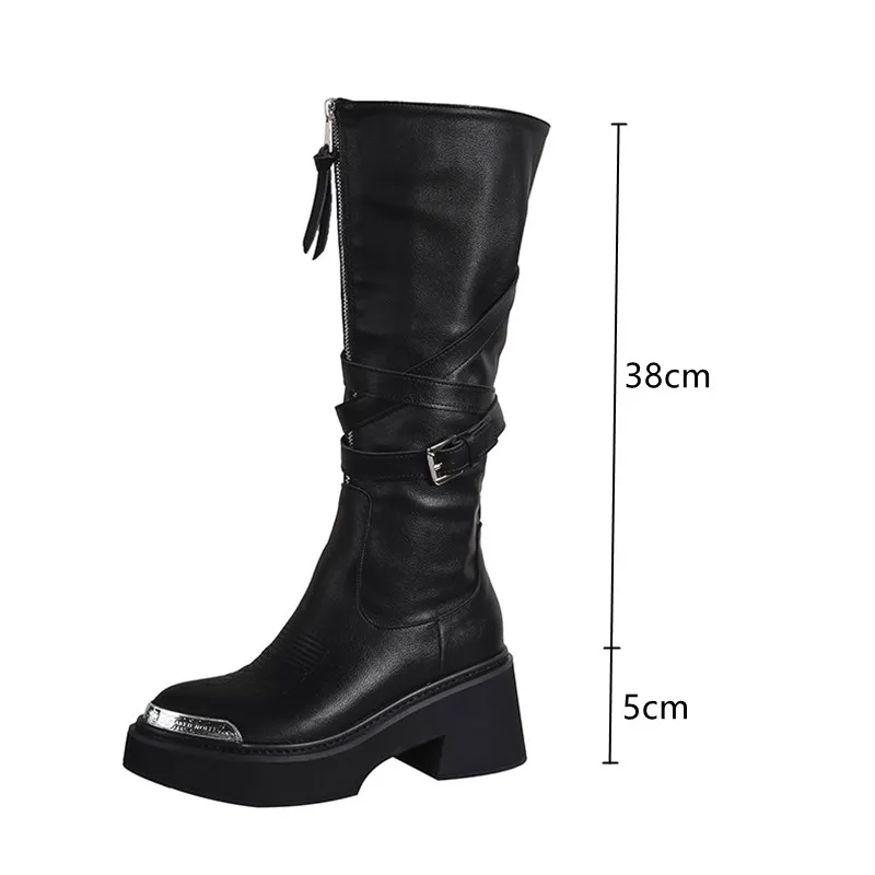 Autunno inverno moda cerniera in pelle donna stivaletti moto alti al ginocchio zeppe Casual tacchi alti grossi stivali lunghi cavaliere scarpe