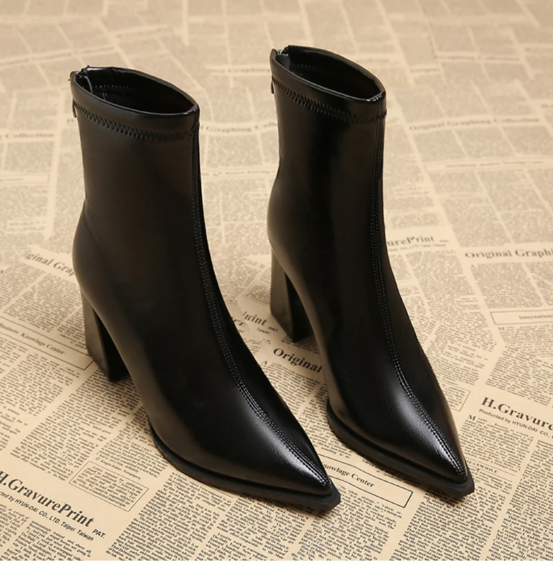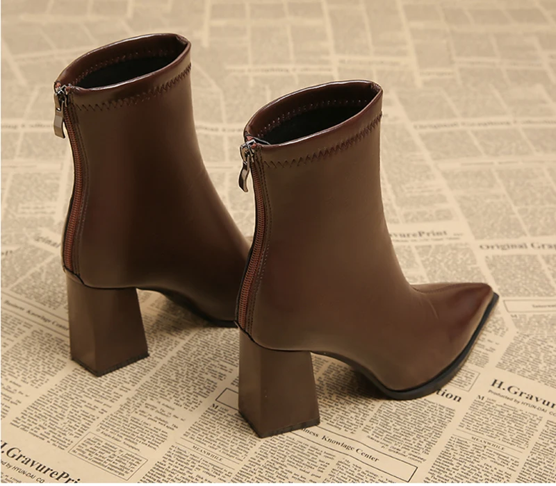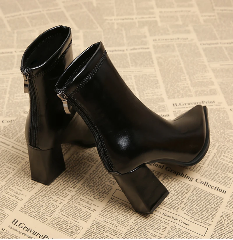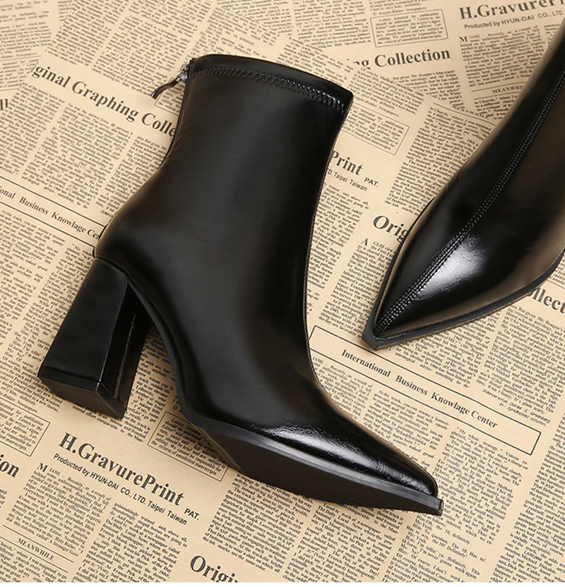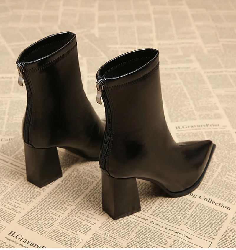 Autunno Inverno Moda Stivaletti a punta Donna Cerniere Tacchi spessi Scarpe Street Style Banchetto Party Breve Botas Mujer 1Autunno Inverno Moda Stivaletti a punta Donna Cerniere Tacchi spessi Scarpe Street Style Banchetto Party Breve Botas Mujer