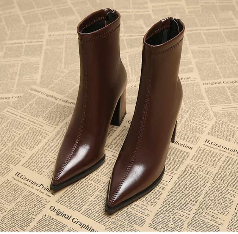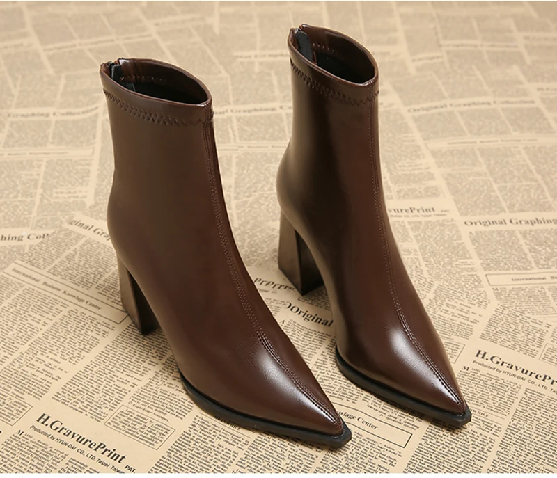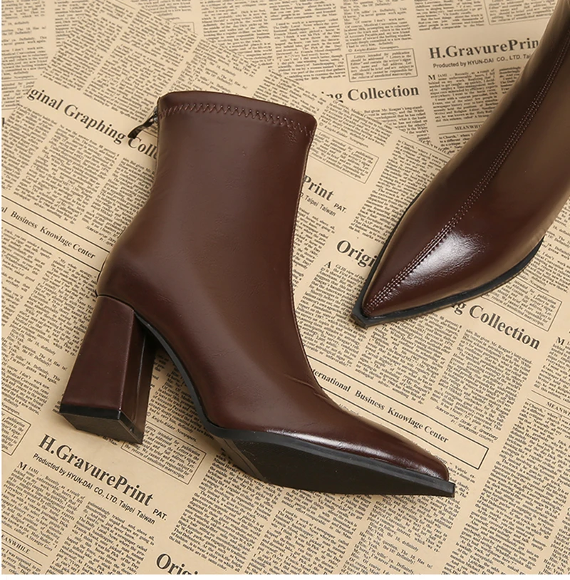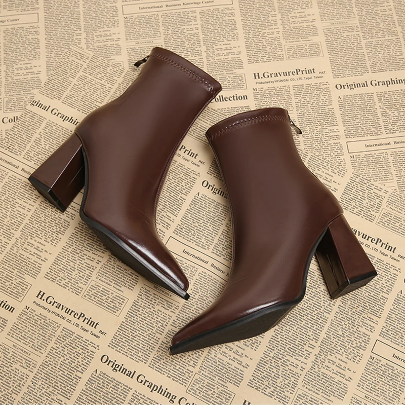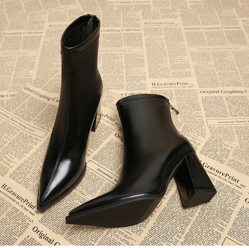Autunno Inverno Moda Stivaletti a punta Donna Cerniere Tacchi spessi Scarpe Street Style Banchetto Party Breve Botas Mujer 1Autunno Inverno Moda Stivaletti a punta Donna Cerniere Tacchi spessi Scarpe Street Style Banchetto Party Breve Botas Mujer