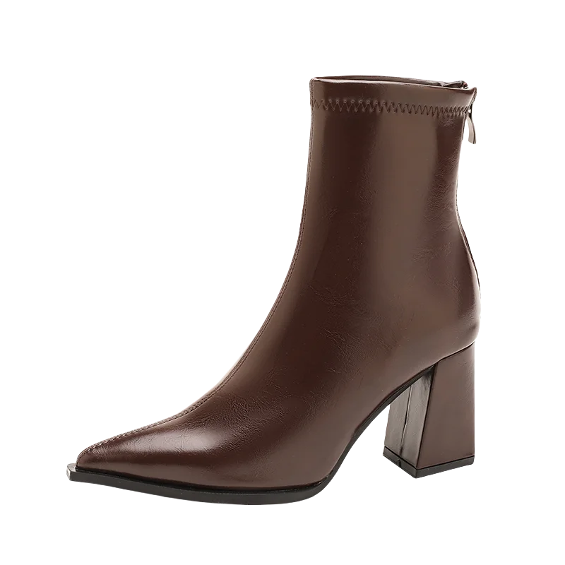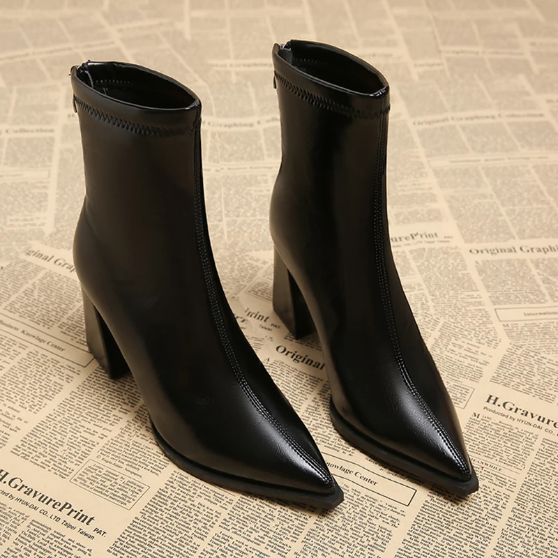 Autunno Inverno Moda Stivaletti a punta Donna Cerniere Tacchi spessi Scarpe Street Style Banchetto Party Breve Botas Mujer 1Autunno Inverno Moda Stivaletti a punta Donna Cerniere Tacchi spessi Scarpe Street Style Banchetto Party Breve Botas Mujer