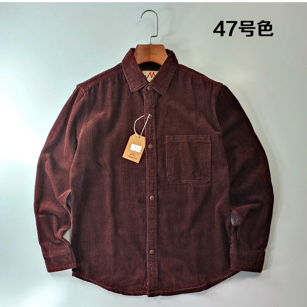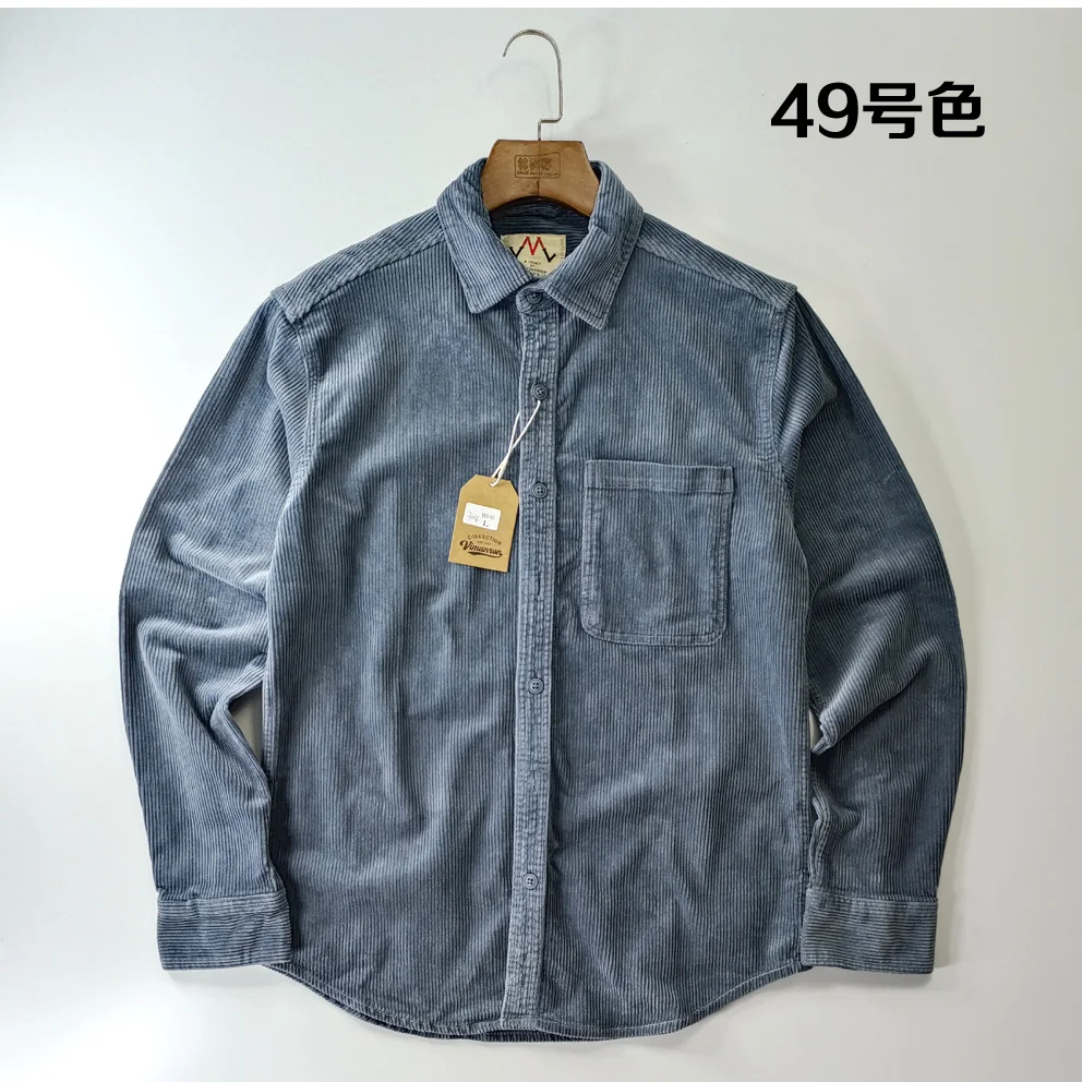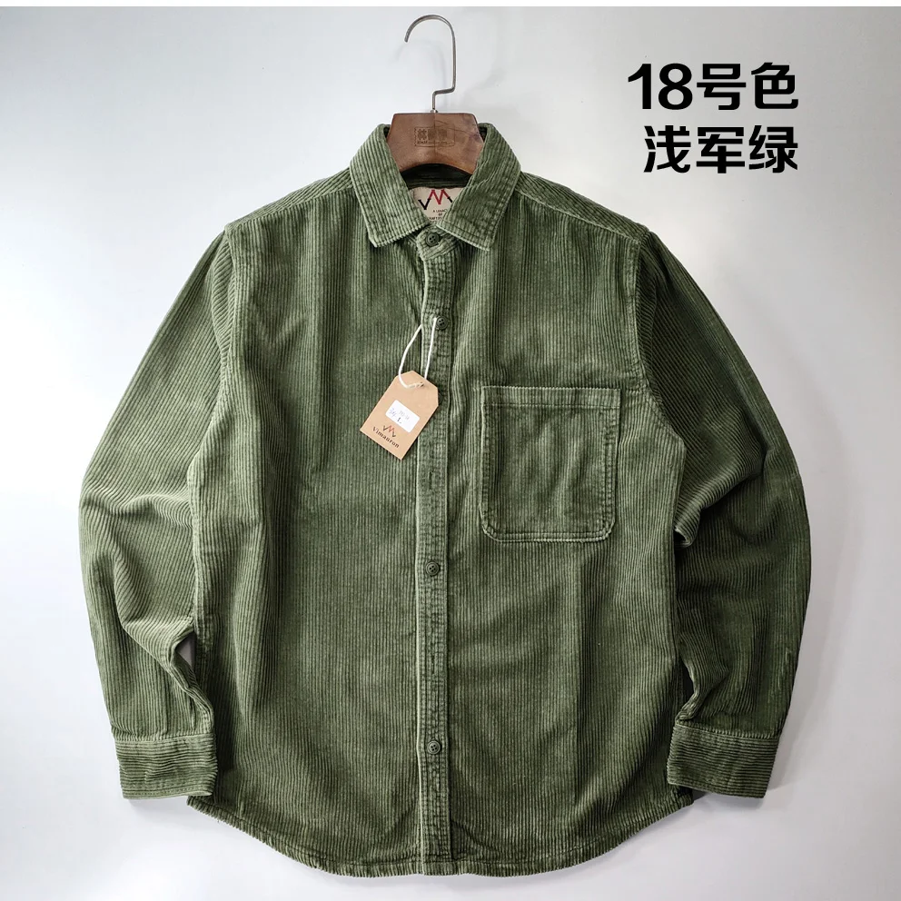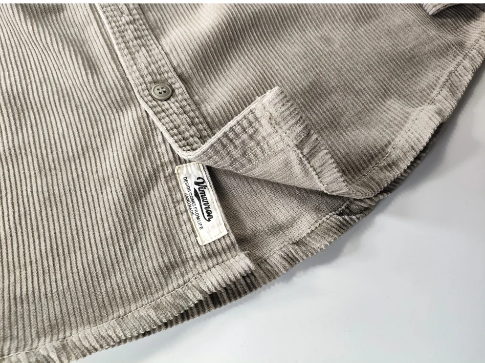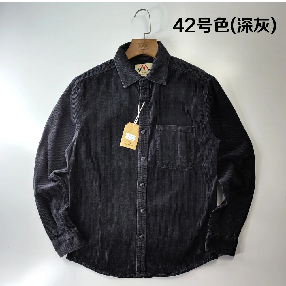 Autunno Inverno New American Retro Camicia a maniche lunghe in velluto a coste con risvolto Moda uomo 100% cotone lavato Tasca singola Camicette casual
