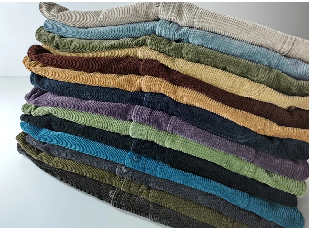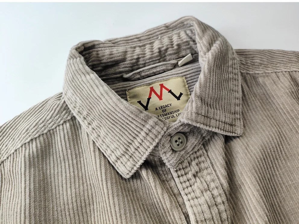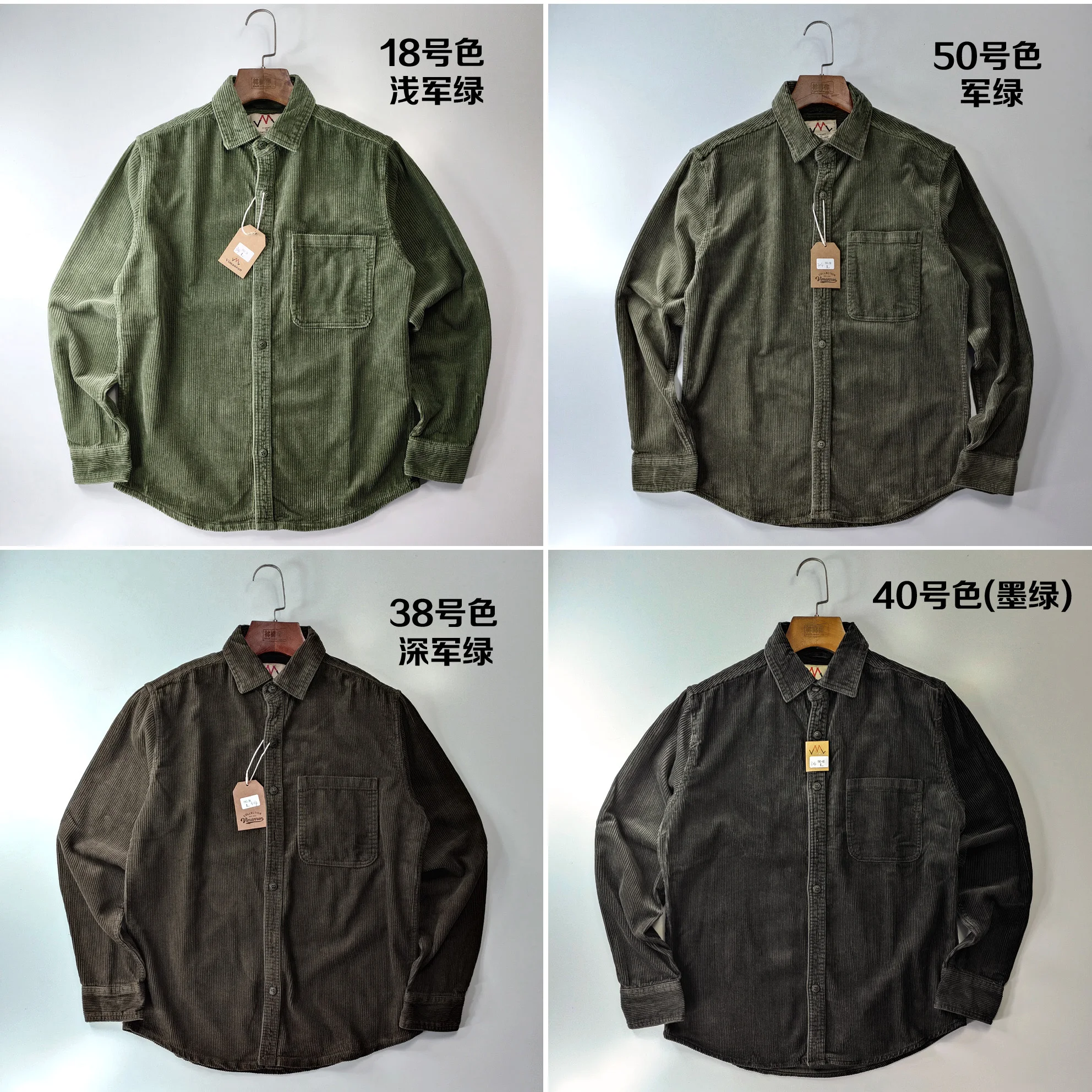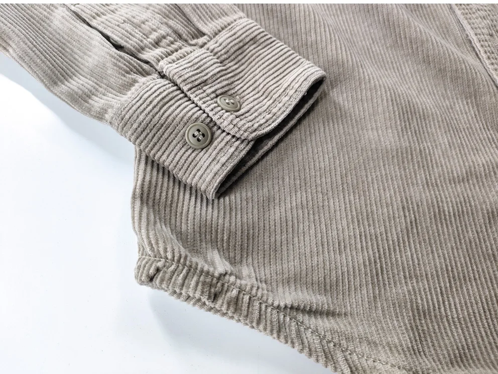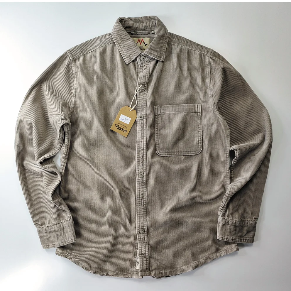 Autunno Inverno New American Retro Camicia a maniche lunghe in velluto a coste con risvolto Moda uomo 100% cotone lavato Tasca singola Camicette casual