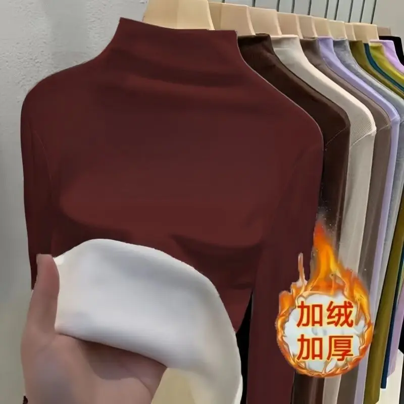 Autunno Inverno New Fashion Manica lunga Mezza collo alto Camicia che tocca il fondo Solido Abbigliamento donna Allentato All-match Addensare Chic TopPensa ad un Regalo Unico e Utile per le Persone a te Vicine!! Regala un buono a partire da € 10,00 a € 300,00