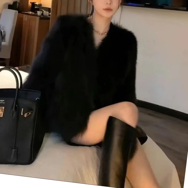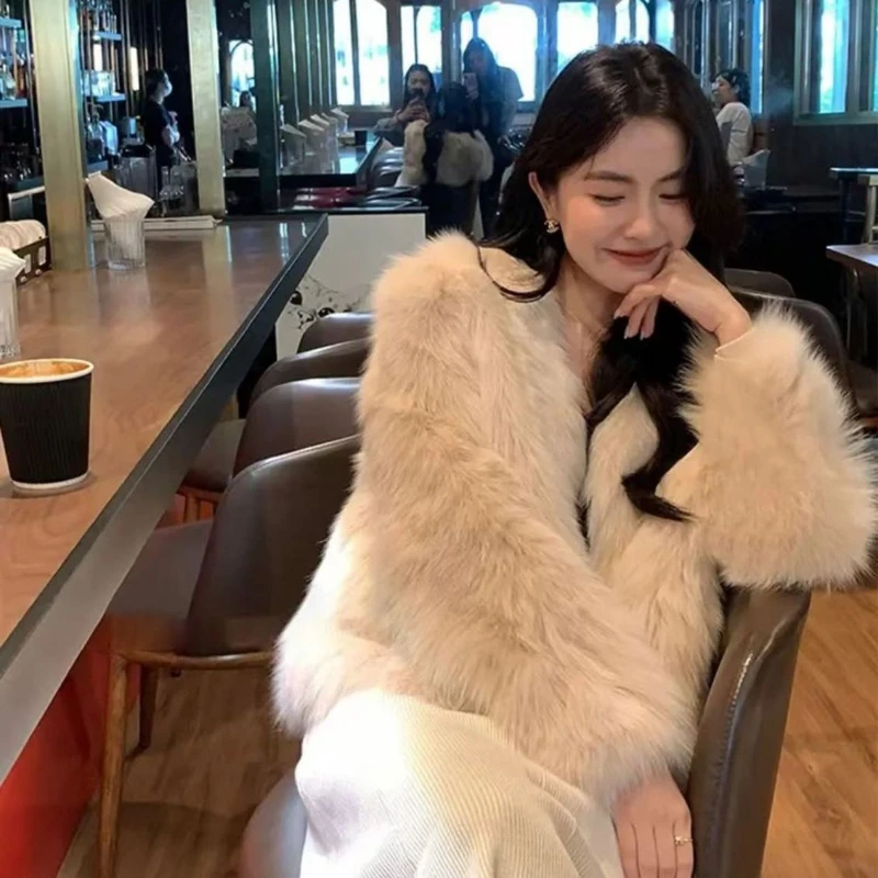 Autunno Inverno New Fashion Scollo a V Manica lunga Solid Pelliccia di volpe Erba Trench Abbigliamento donna Bottone coreano Caldo All-match Chic TopPensa ad un Regalo Unico e Utile per le Persone a te Vicine!! Regala un buono a partire da € 10,00 a € 300,00