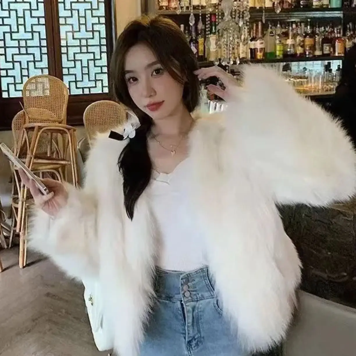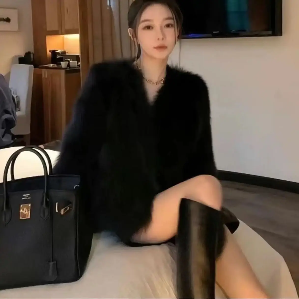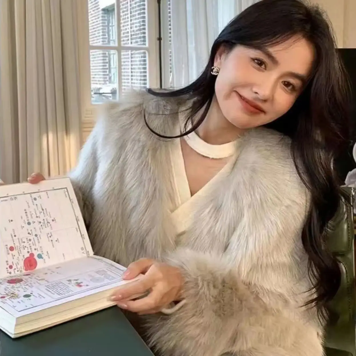 Autunno Inverno New Fashion Scollo a V Manica lunga Solid Pelliccia di volpe Erba Trench Abbigliamento donna Bottone coreano Caldo All-match Chic TopPensa ad un Regalo Unico e Utile per le Persone a te Vicine!! Regala un buono a partire da € 10,00 a € 300,00