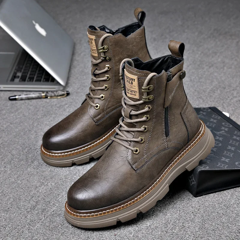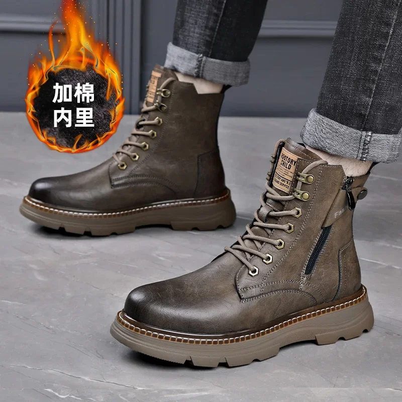 Autunno inverno nuovi stivali di pelle di mucca firmati per uomo moda Casual tuta in pile High Top scarpe con plateau da uomo calde 1Autunno inverno nuovi stivali di pelle di mucca firmati per uomo moda Casual tuta in pile High Top scarpe con plateau da uomo calde