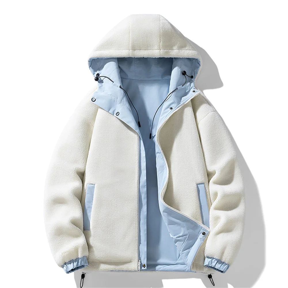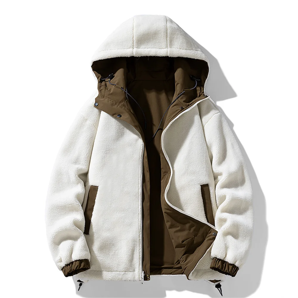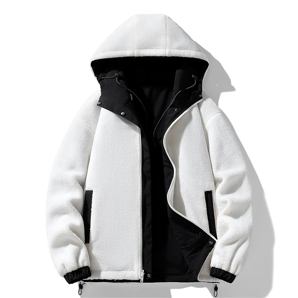 Autunno/Inverno Nuovo Arrivo da Uomo Reversibile Foderato in Pile Addensato Giacca con Cappuccio Moda Casual Antivento Caldo Abbigliamento da Lavoro Capispalla
