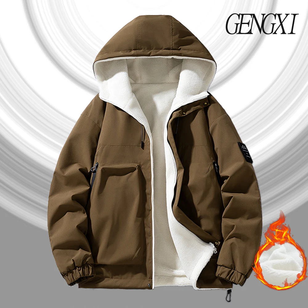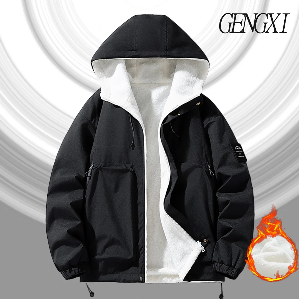 Autunno/Inverno Nuovo Arrivo da Uomo Reversibile Foderato in Pile Addensato Giacca con Cappuccio Moda Casual Antivento Caldo Abbigliamento da Lavoro Capispalla