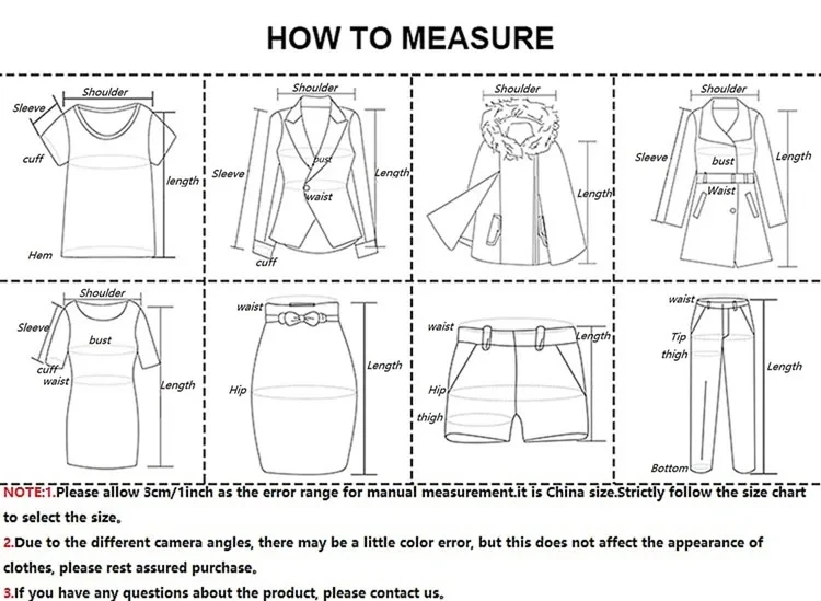 nota: 1. A causa dei diversi angoli di ripresa, potrebbe esserci un piccolo errore di colore, ma ciò non influisce sull’aspetto dei vestiti, ti assicuriamo l’acquisto 2.Questa è una misurazione manuale del prodotto, ci sarà un errore di 1-3 cm, se non sai come scegliere la taglia, contattaci 3. Ti auguro una felice esperienza di acquisto.grazie.