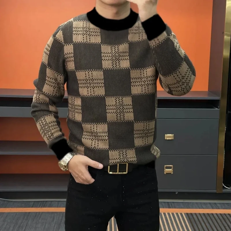 Autunno inverno nuovo maglione alla moda da uomo maglione lavorato a maglia girocollo a maniche lunghe dimagrante da uomo, camicia Base di mezza età