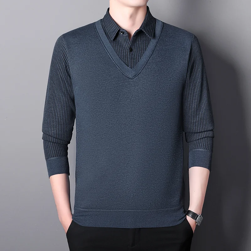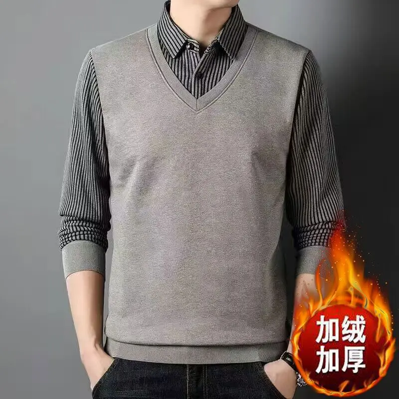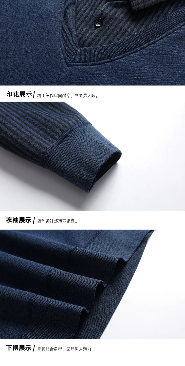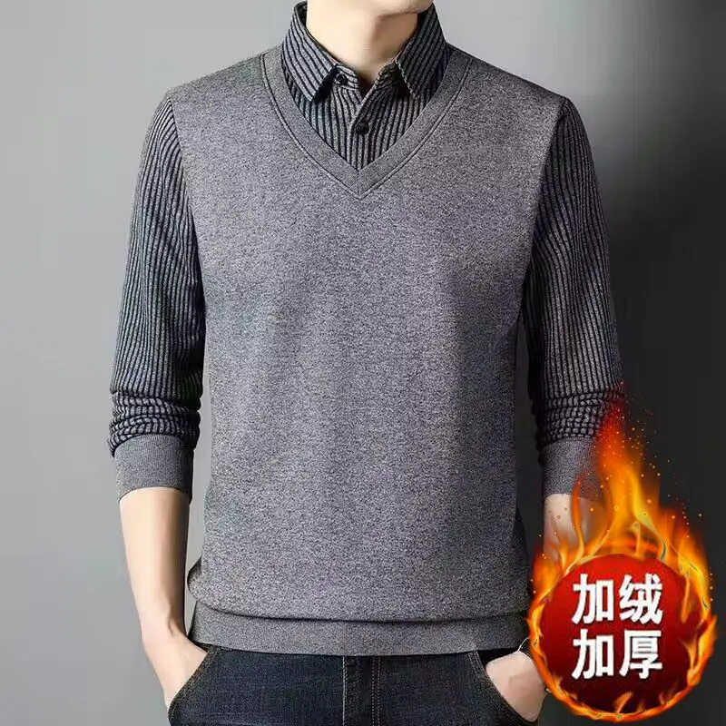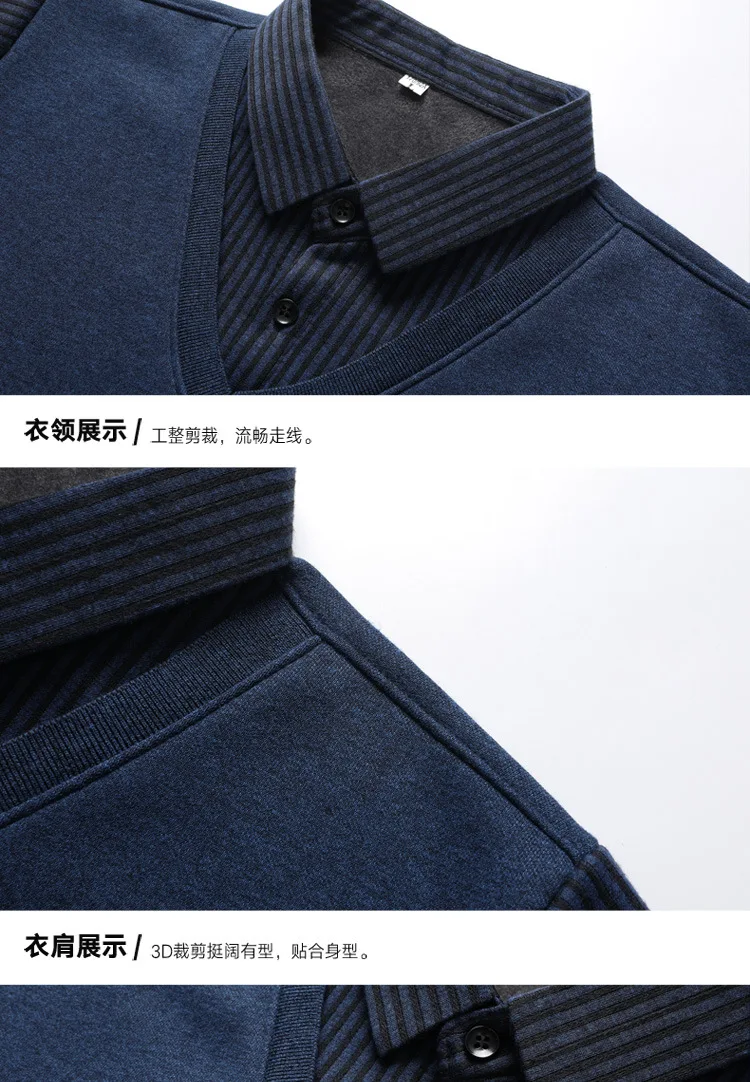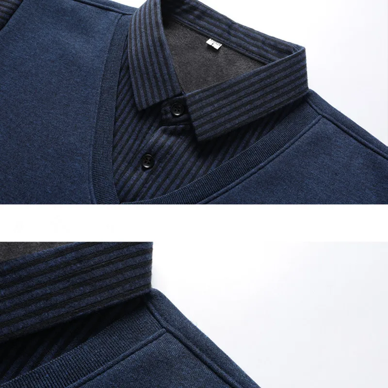 Autunno inverno Pullover in pile uomo colletto della camicia falso due strisce patchwork maglieria maglioni addensato maglione camicia fondo caldo 1Autunno inverno Pullover in pile uomo colletto della camicia falso due strisce patchwork maglieria maglioni addensato maglione camicia fondo caldo