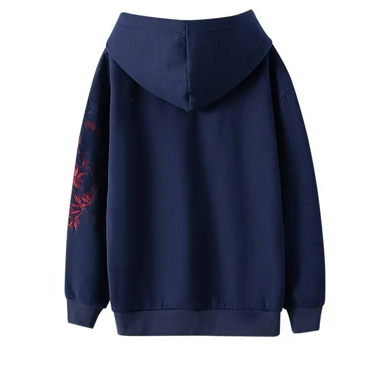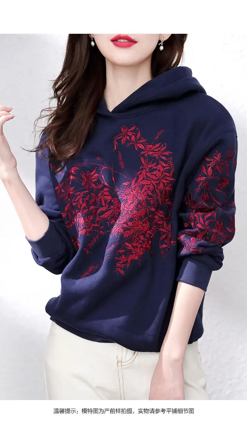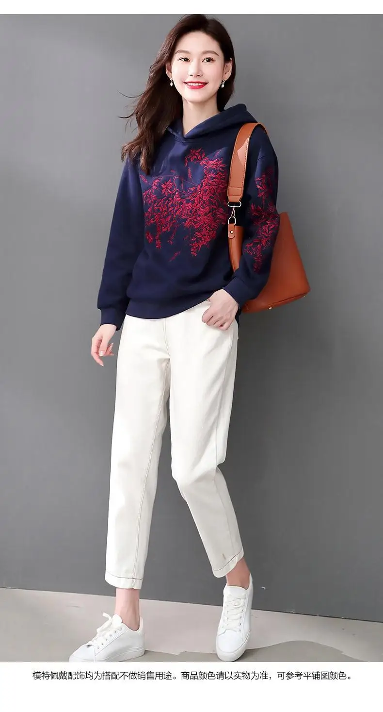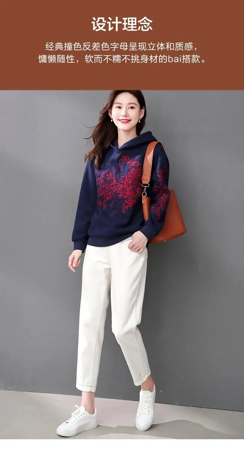 Autunno Inverno Pullover Ricamo Nylon Cotone Abbigliamento da donna Stampa Spessa Casual Leggero Strech Felpe larghe con cappuccio