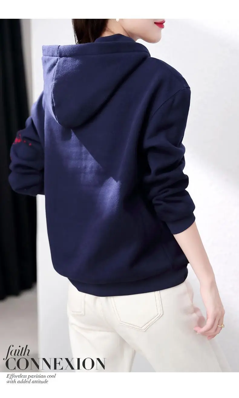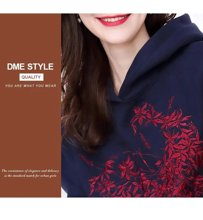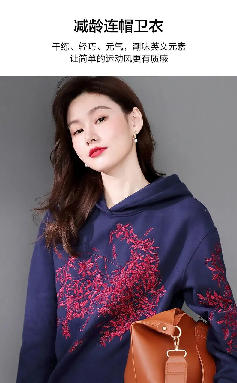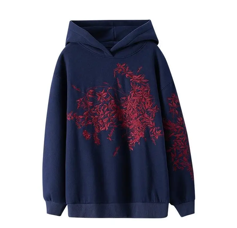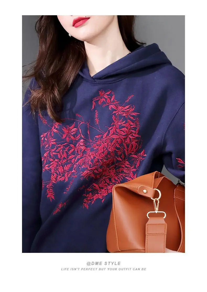 Autunno Inverno Pullover Ricamo Nylon Cotone Abbigliamento da donna Stampa Spessa Casual Leggero Strech Felpe larghe con cappuccio