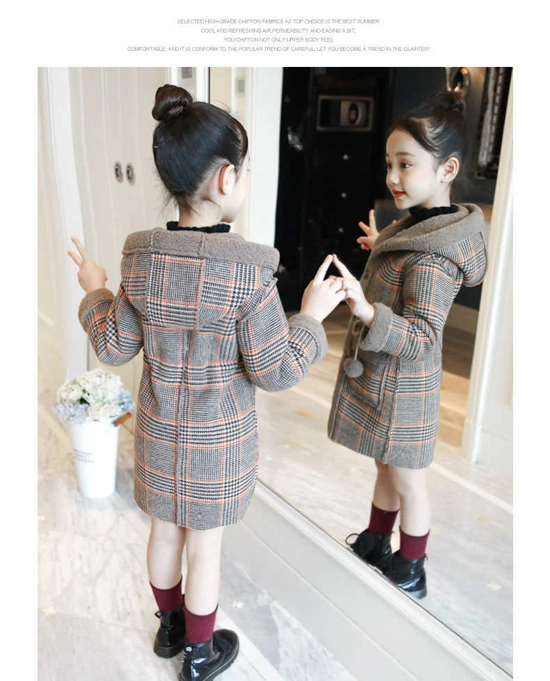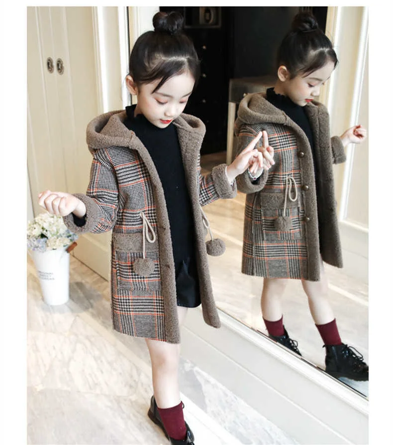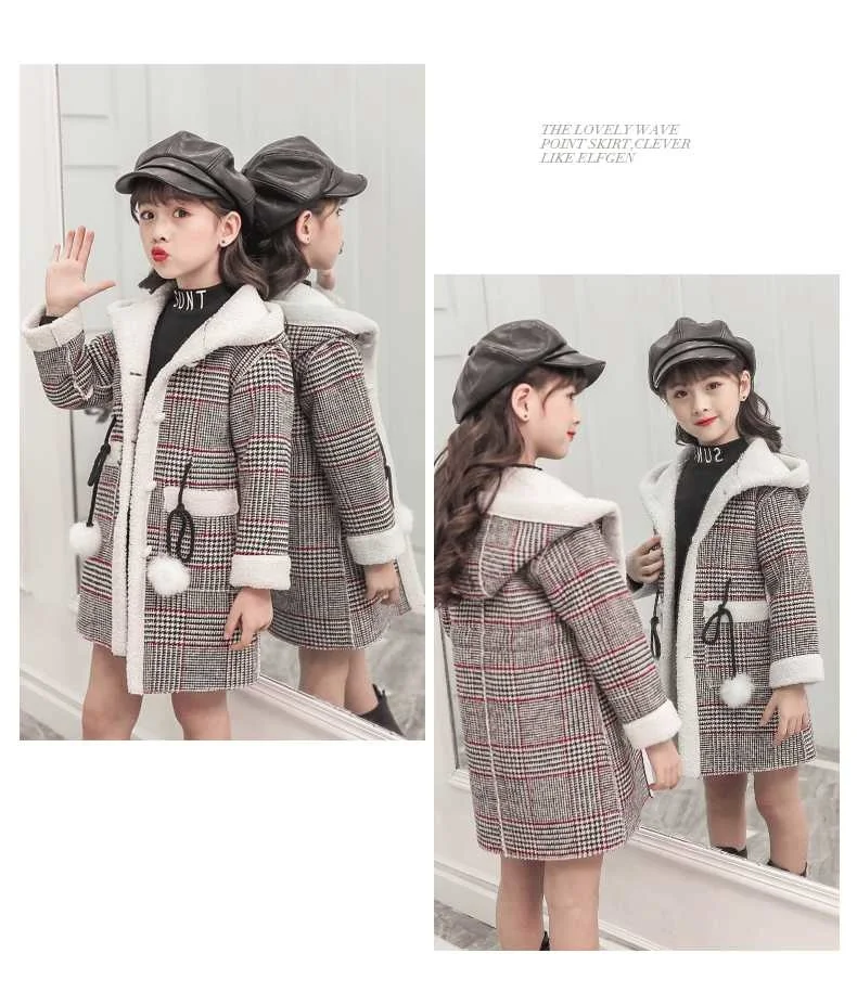 Autunno Inverno Ragazze Cappotto peloso Design alla moda Cappotto lungo per ragazze Capispalla per bambini Modello a griglia Giacca invernale calda Cappotti 4-12T