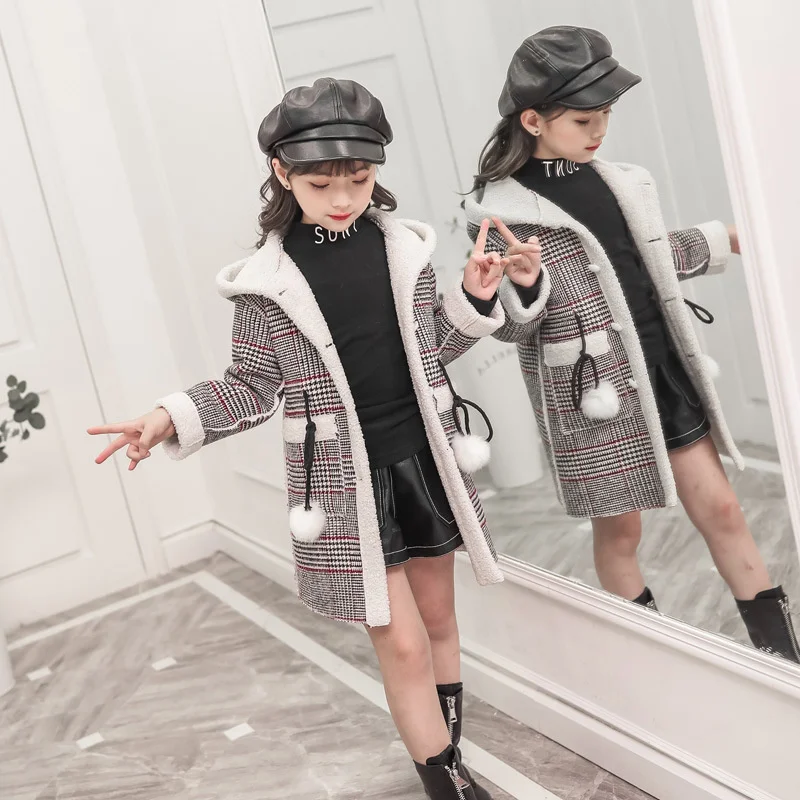 Autunno Inverno Ragazze Cappotto peloso Design alla moda Cappotto lungo per ragazze Capispalla per bambini Modello a griglia Giacca invernale calda Cappotti 4-12T