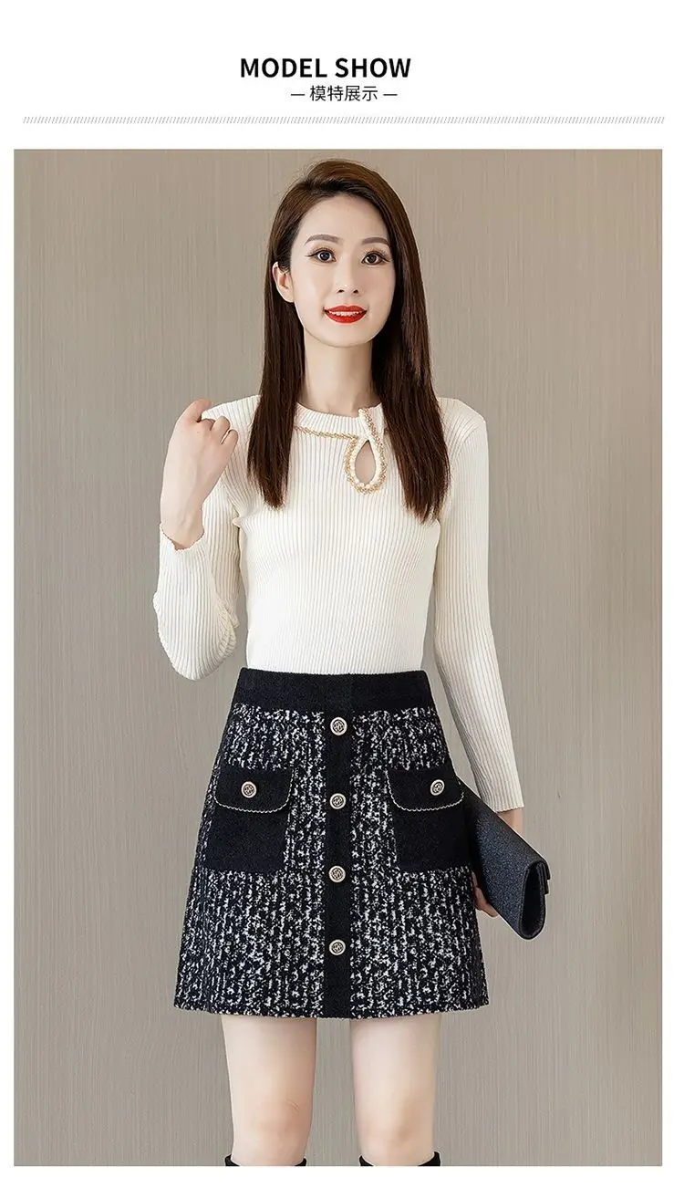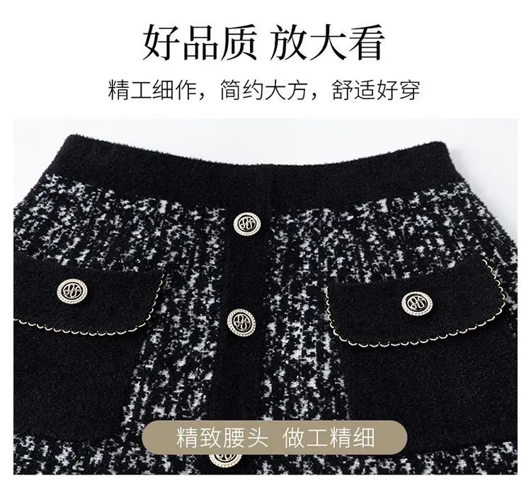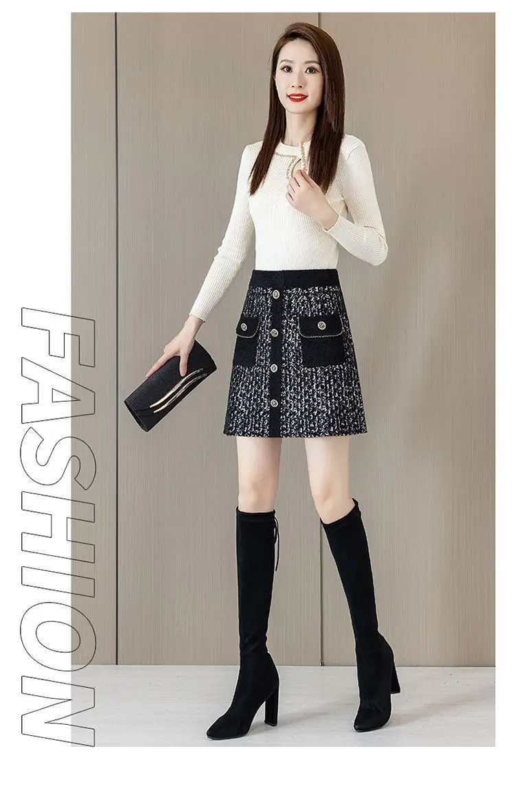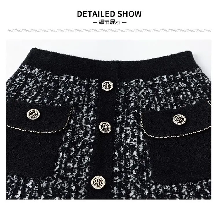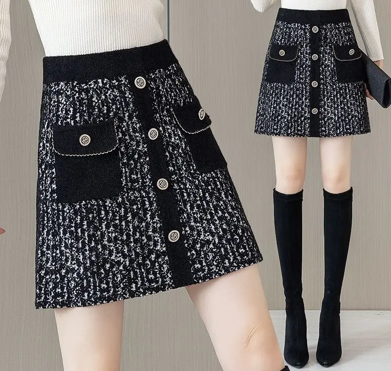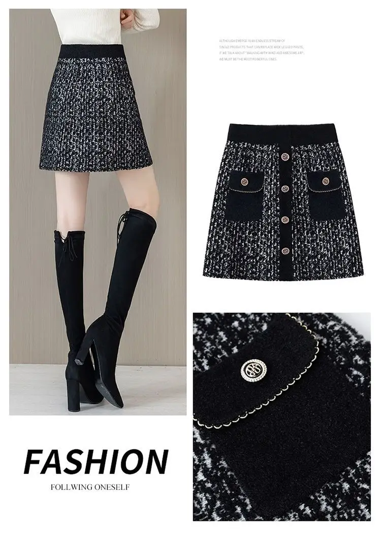 Autunno Inverno Temperamento Patchwork Vita alta Gonna a trapezio Donna All-match Bottoni alla moda Gonne spesse sottili Gonna da donna