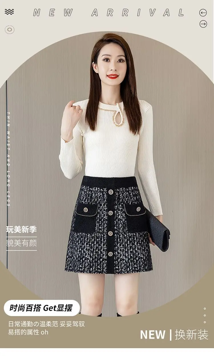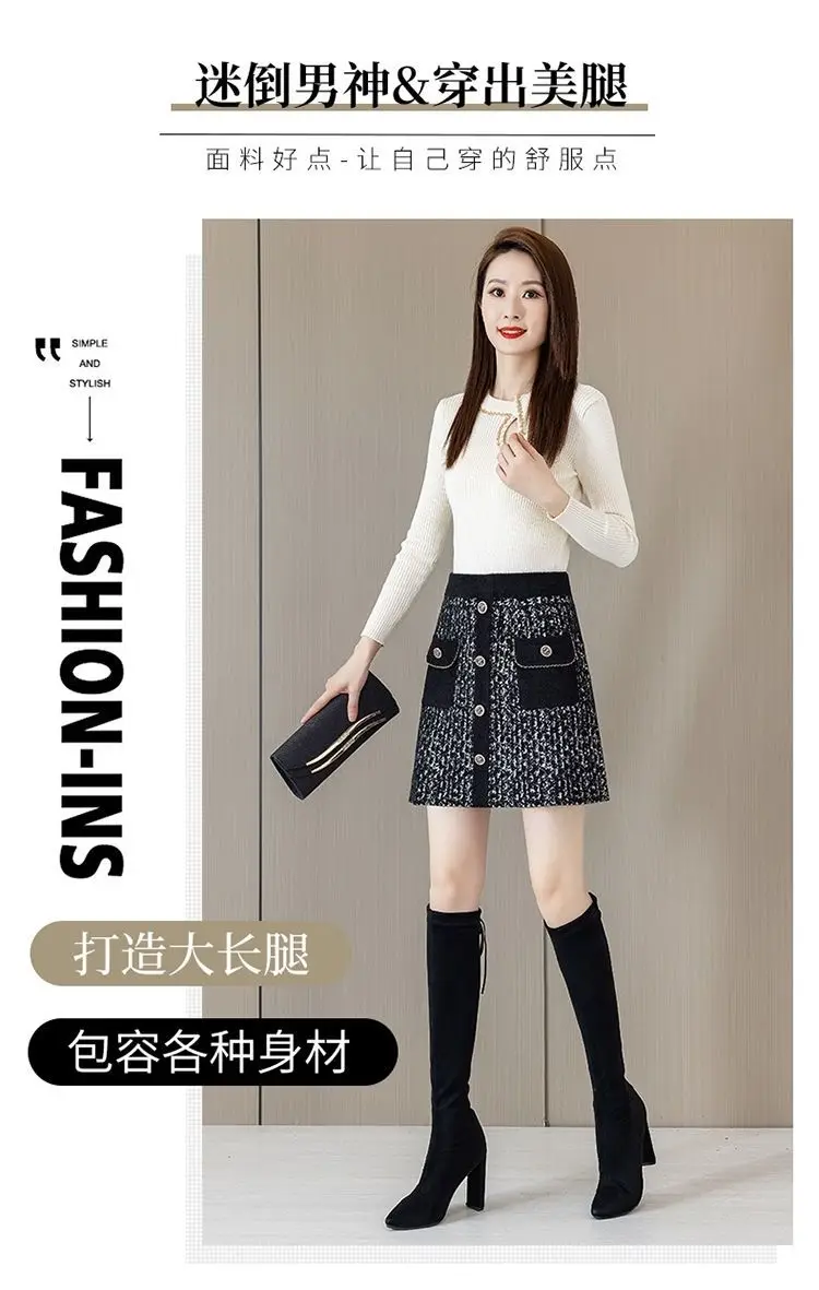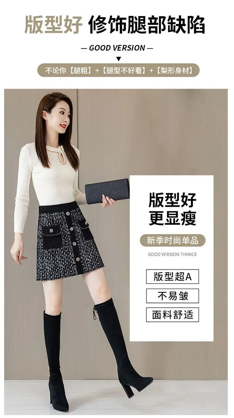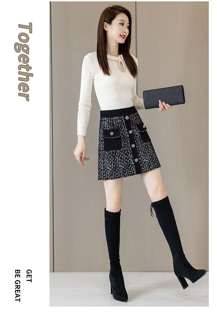 Autunno Inverno Temperamento Patchwork Vita alta Gonna a trapezio Donna All-match Bottoni alla moda Gonne spesse sottili Gonna da donna