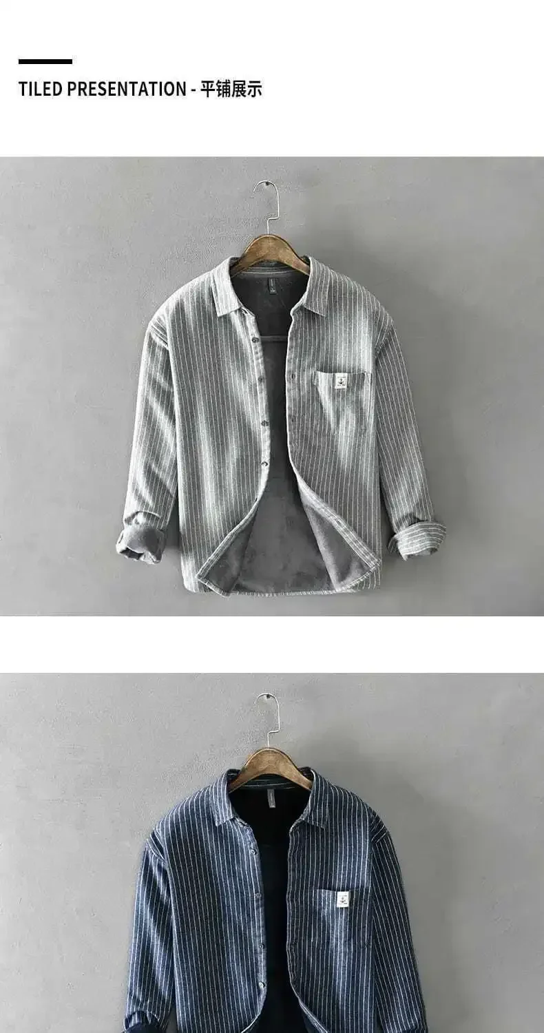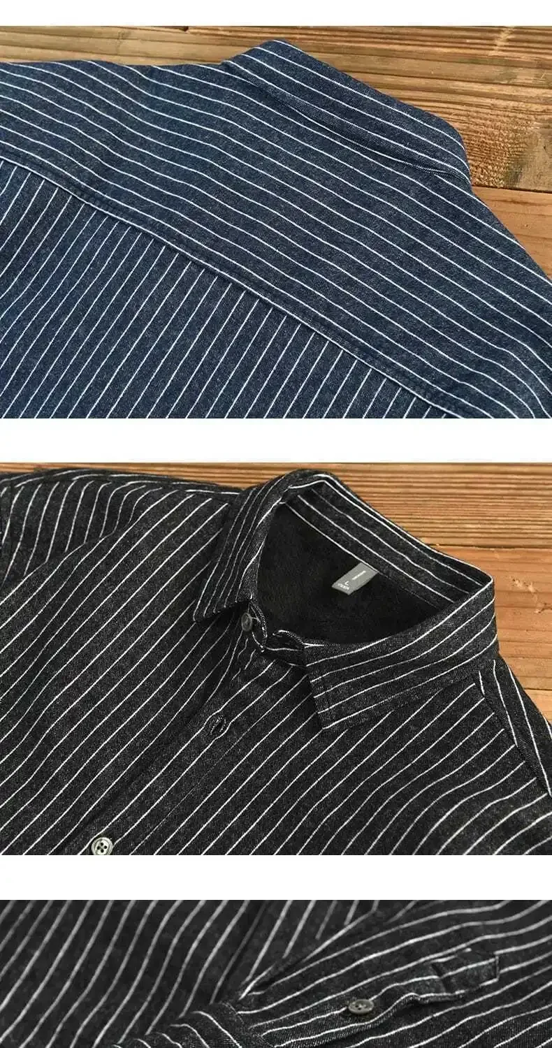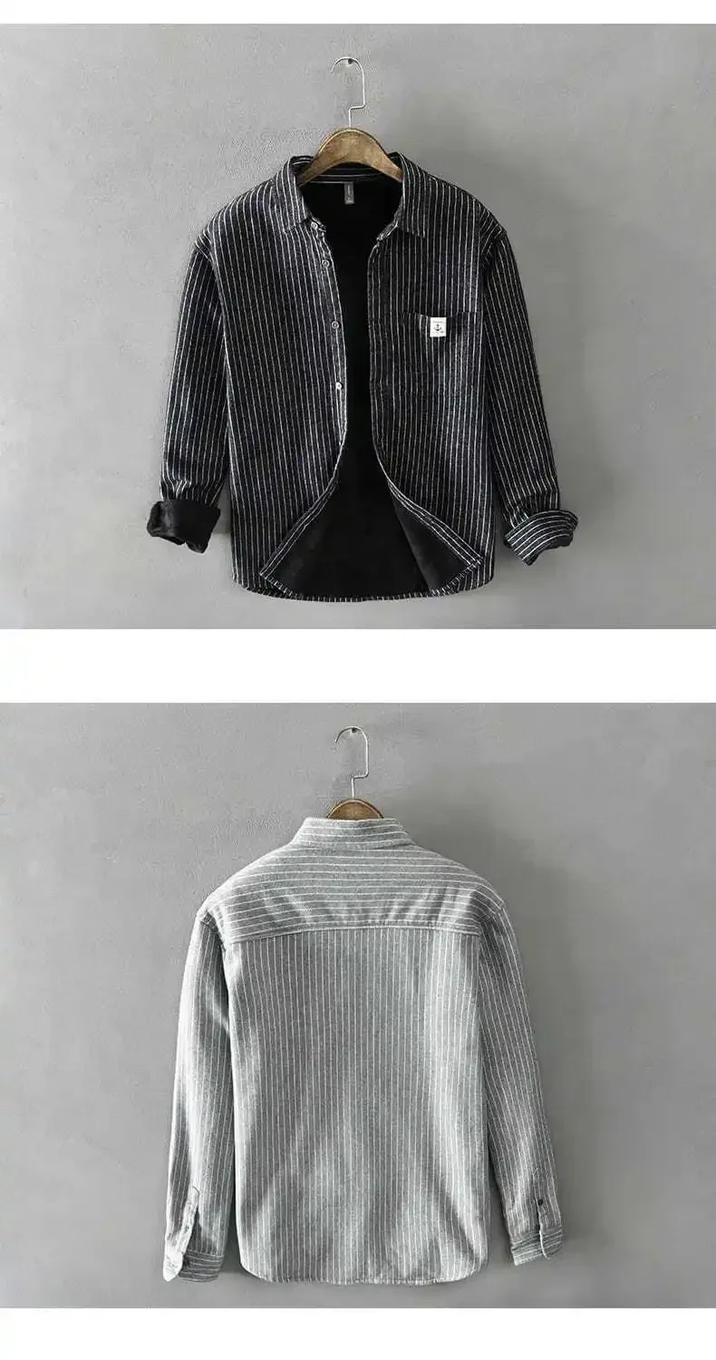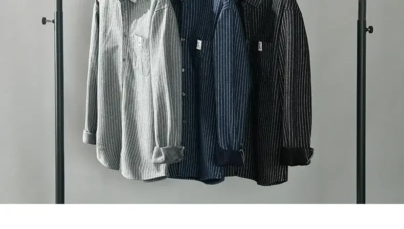 Autunno Inverno Uomo Casual Strisce verticali Plus Camicia in velluto Manica lunga in cotone Comodo top quotidiano Camicie abbottonate Cappotto