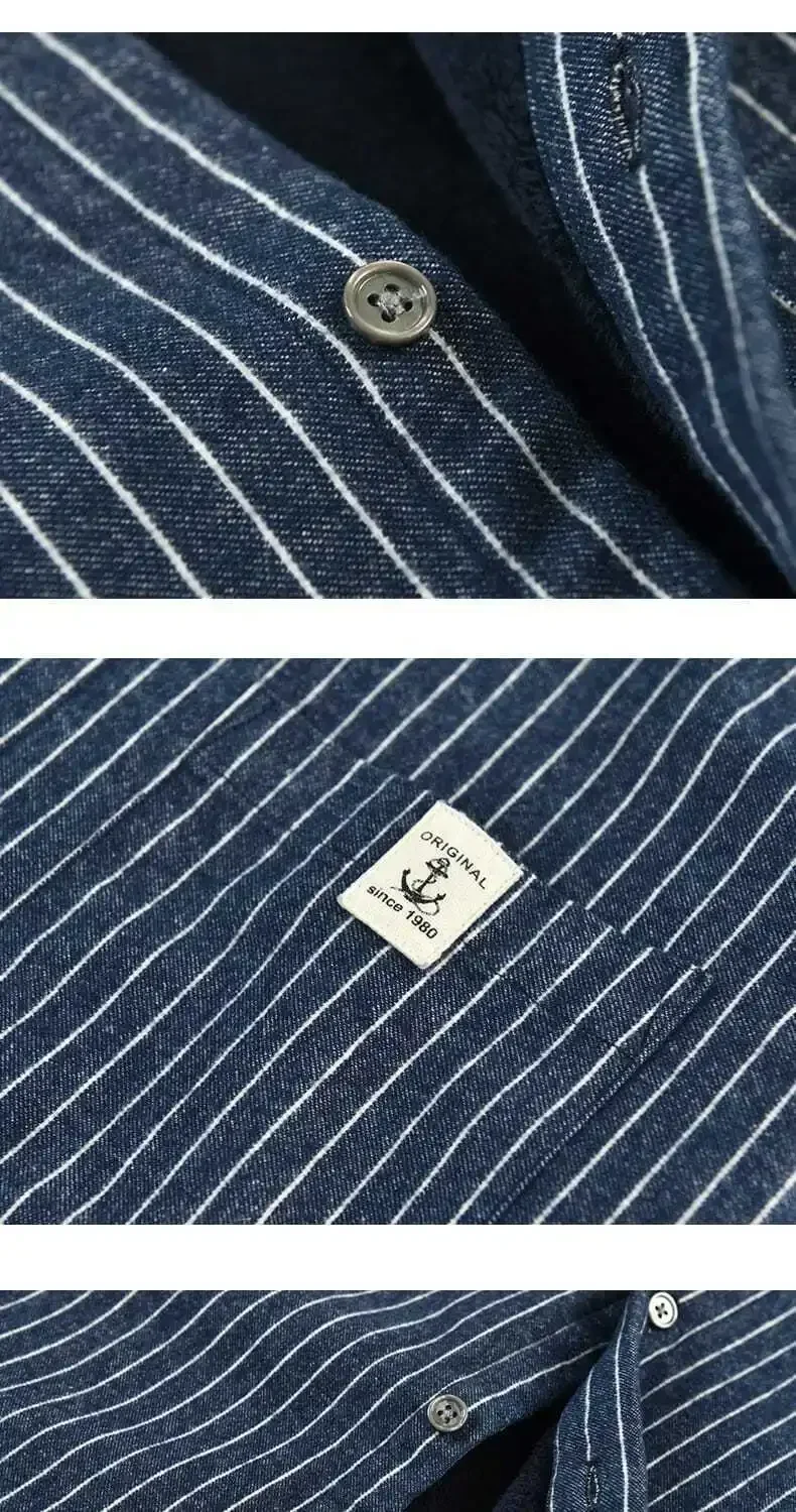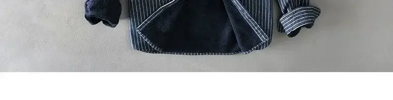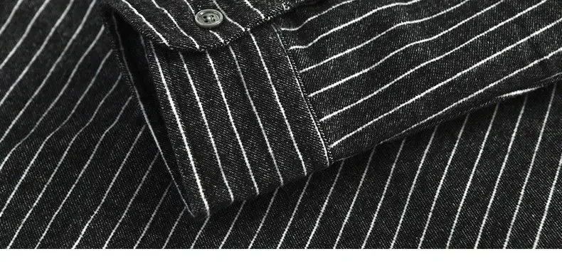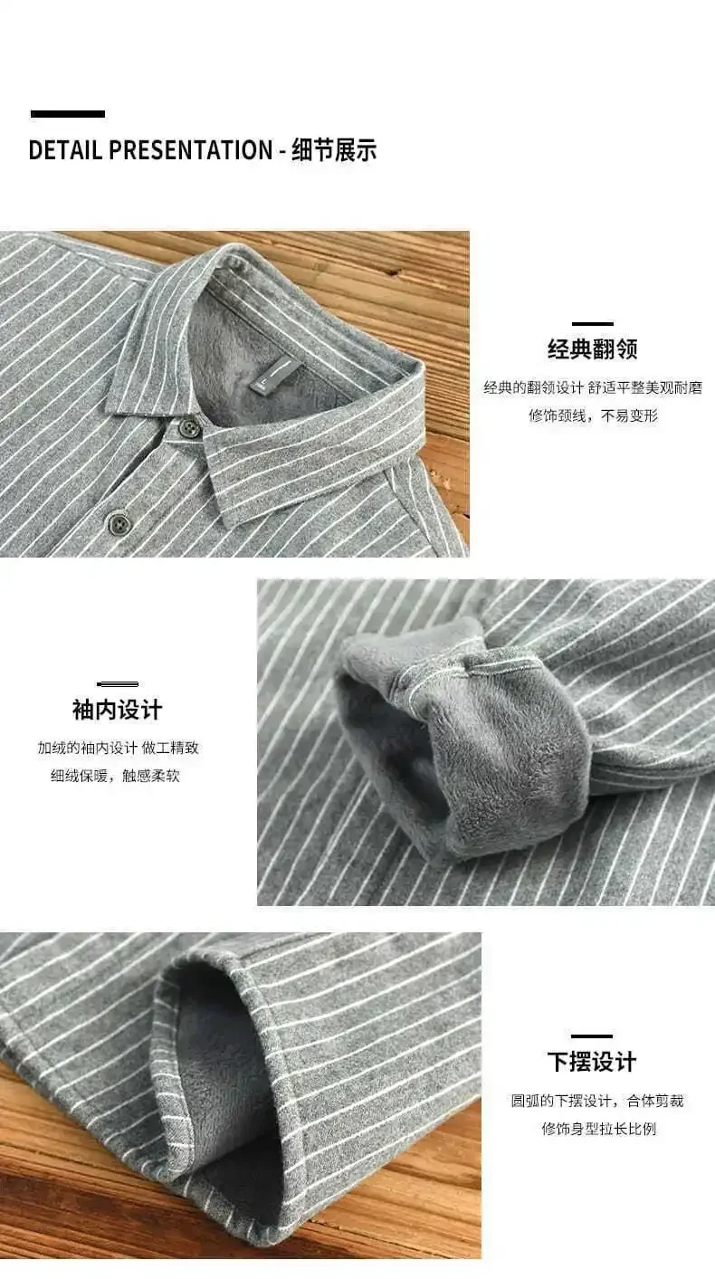 Autunno Inverno Uomo Casual Strisce verticali Plus Camicia in velluto Manica lunga in cotone Comodo top quotidiano Camicie abbottonate Cappotto