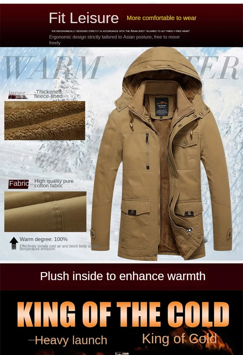 Autunno inverno uomo giacca di cotone Casual Fashion Business British Trench Coat Warm Fleece Trend Versatile maschile con cappuccio Top Clothes