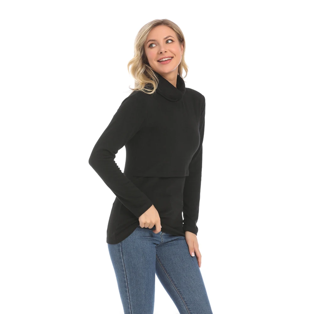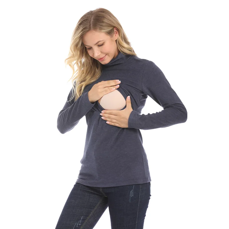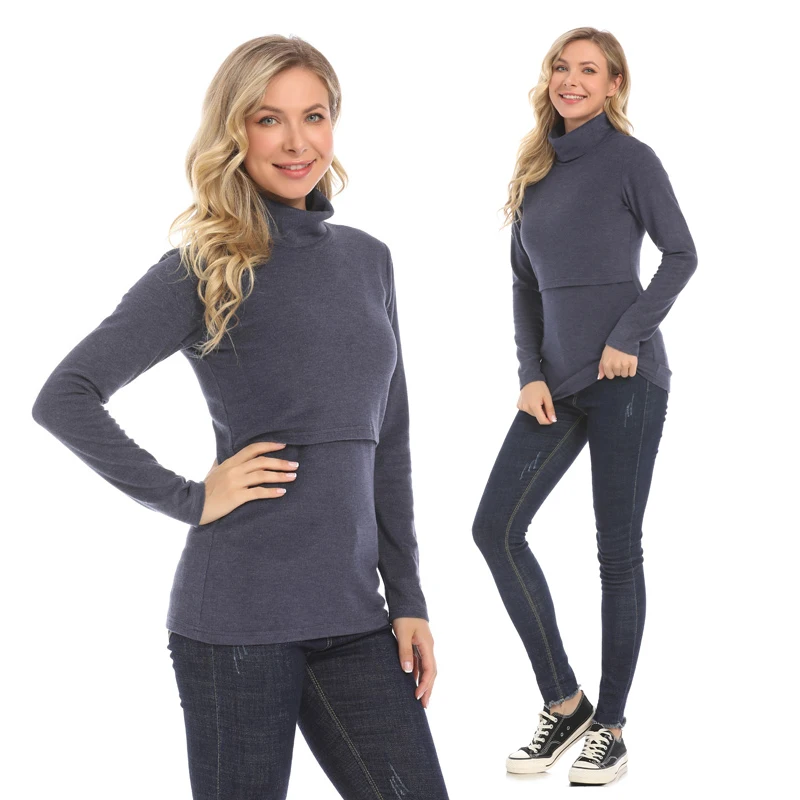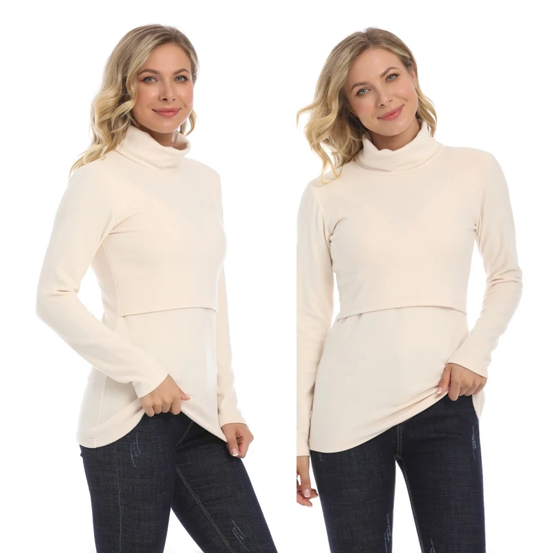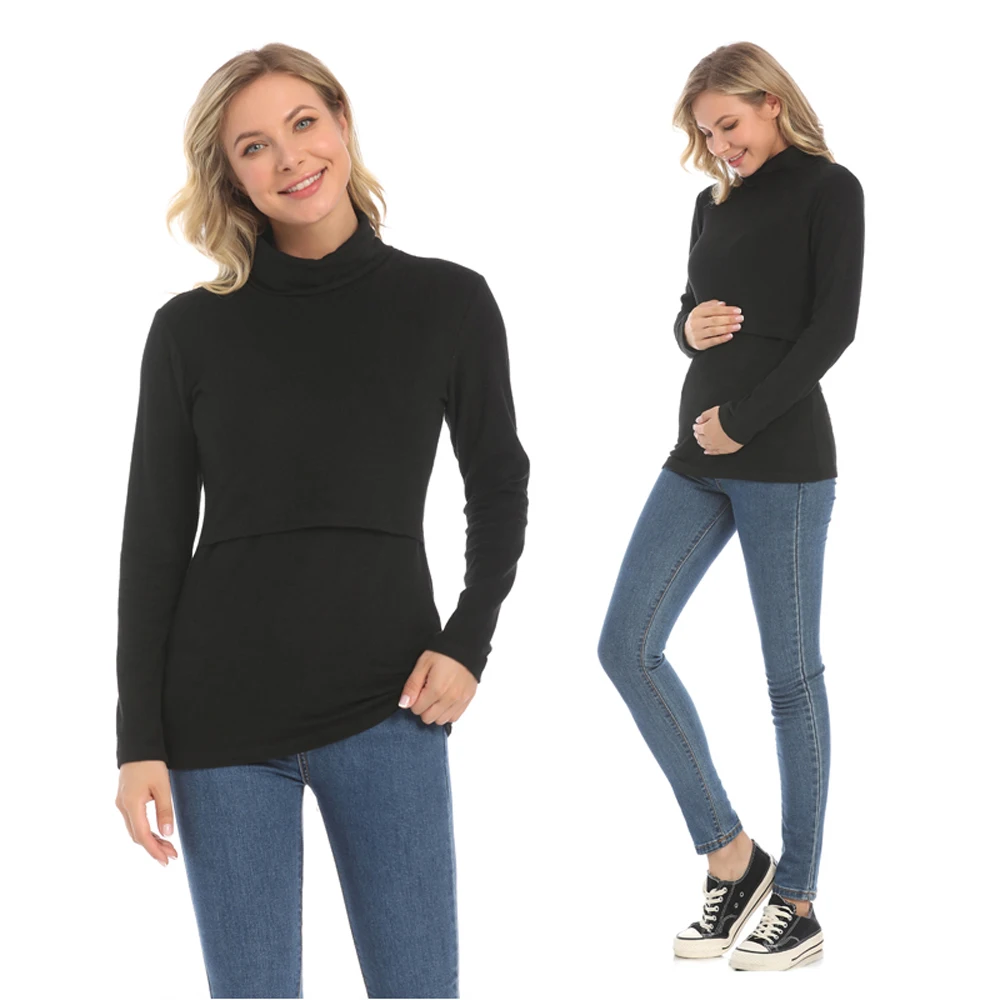 Autunno Inverno Vestiti di maternità Dolcevita Caldo T-shirt in cotone a maniche lunghe Top per allattamento Vestiti per l’allattamento al seno per le donne incinte