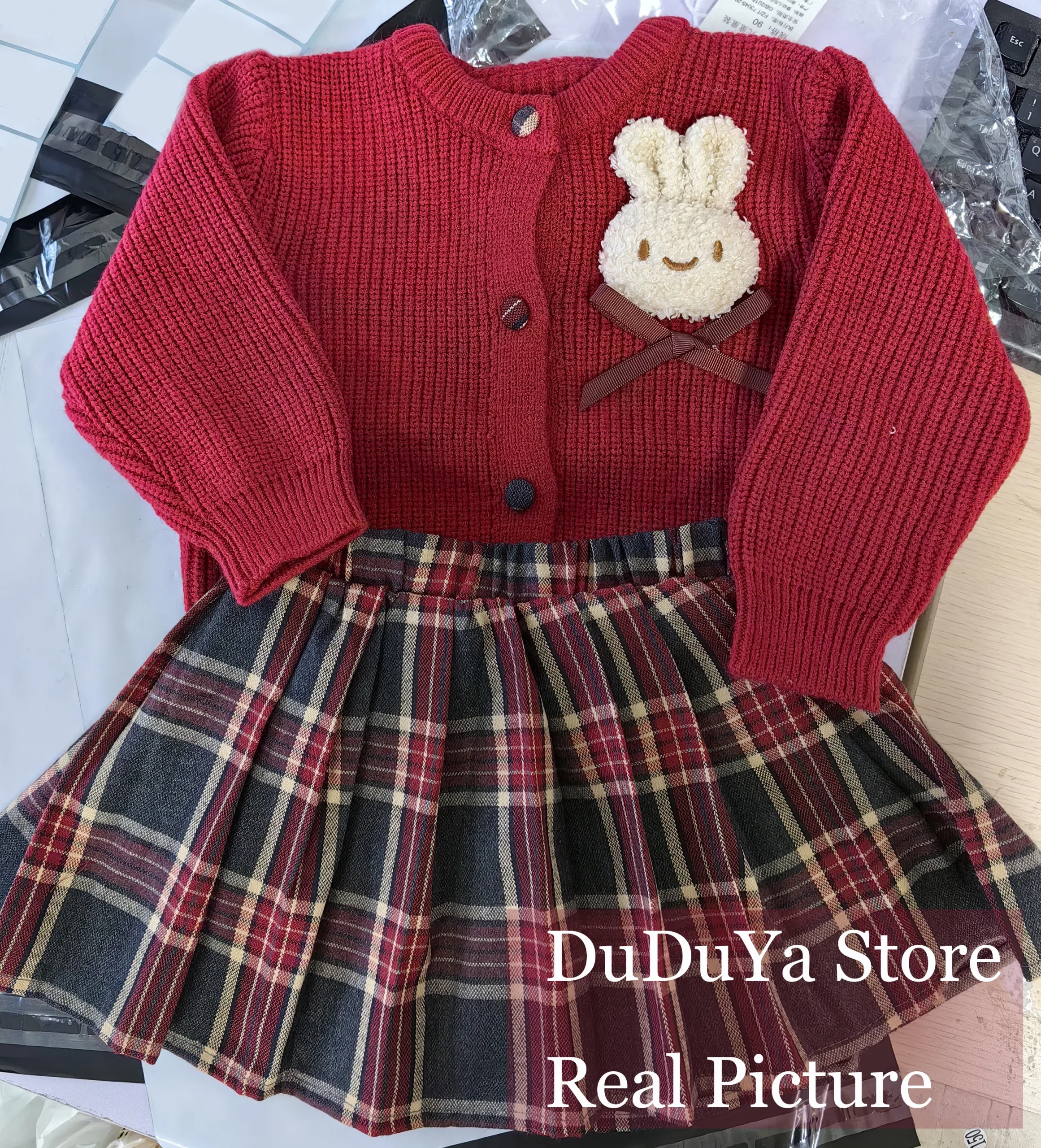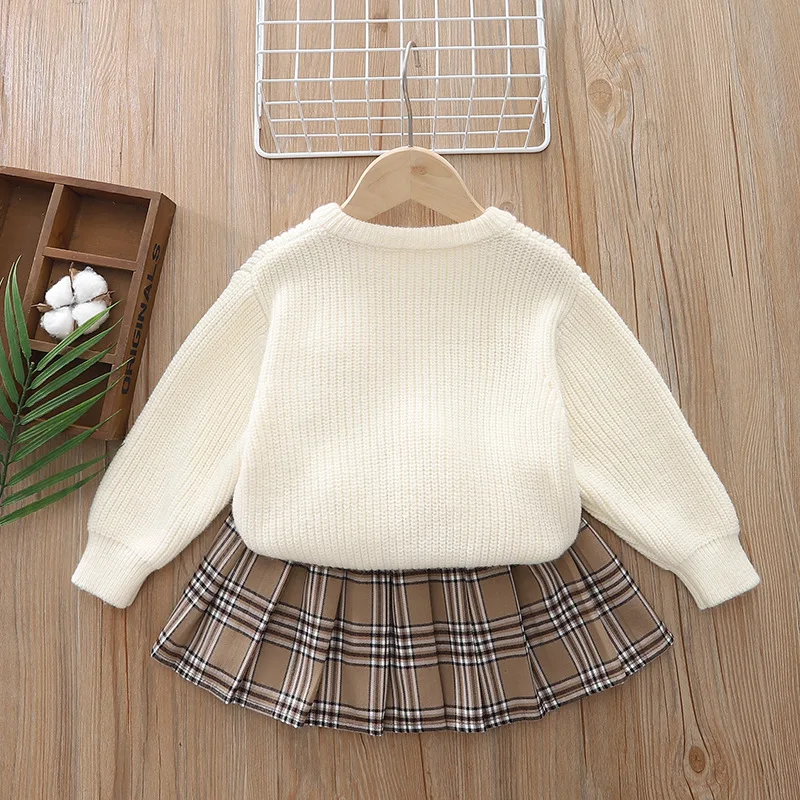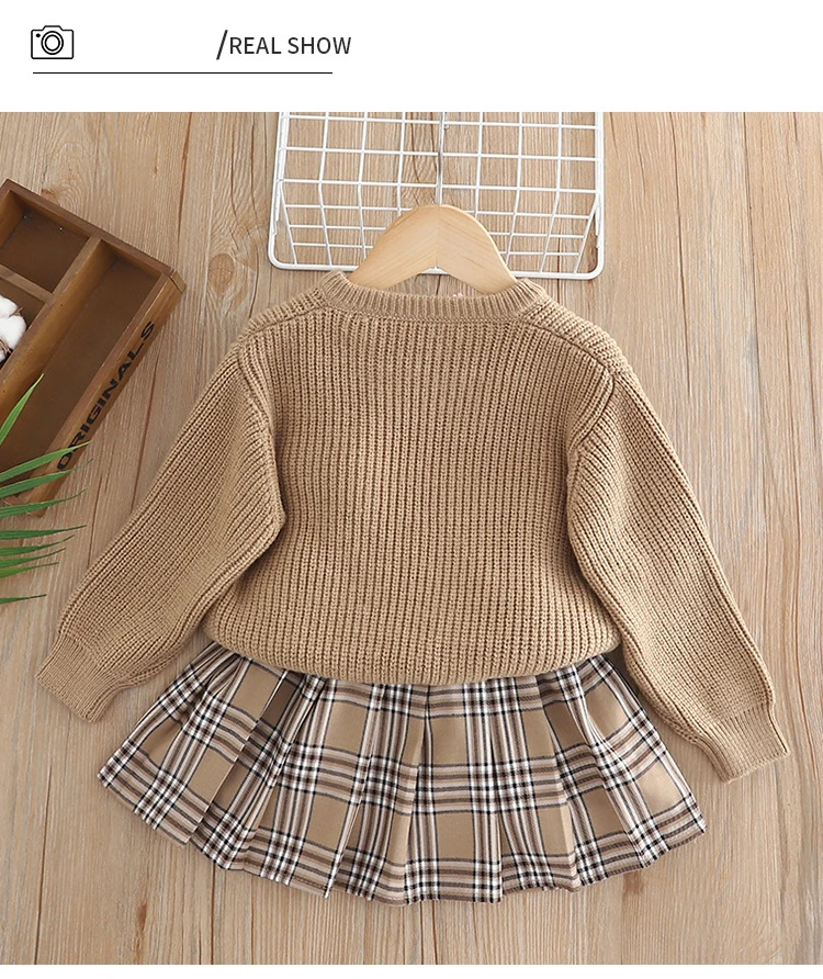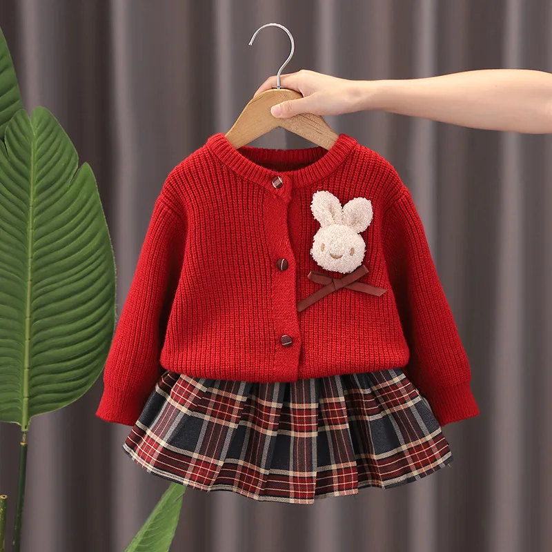 Autunno maglione kaki + gonna 2 pezzi Abbigliamento per bambini Set superiore e inferiore1-6Y Principessa Festa di Natale Set rosso Capispalla carino Ragazza per bambini