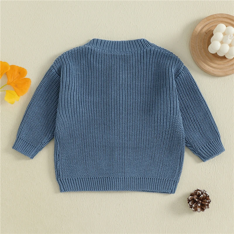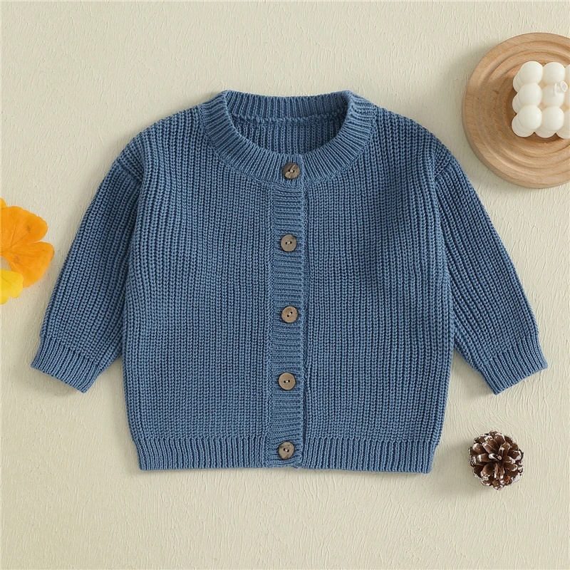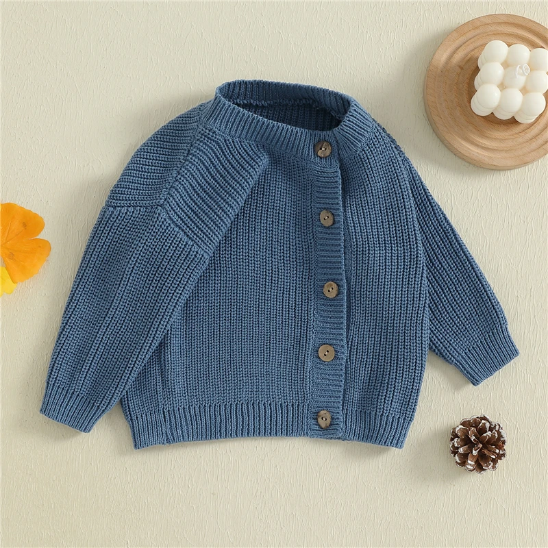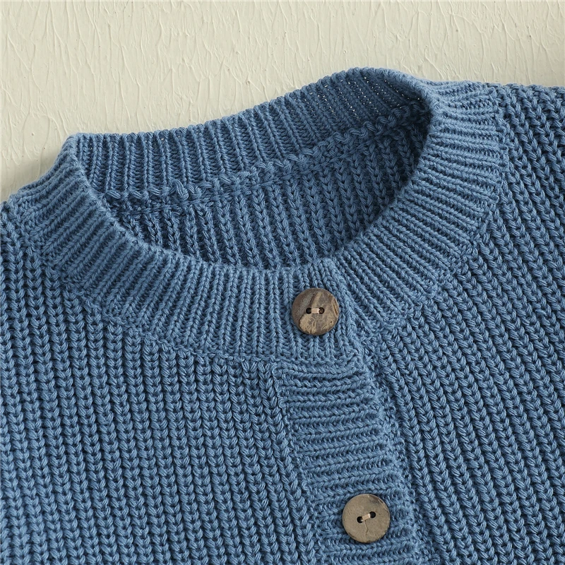 Girls Knit Button Up Sweaters Long Sleeve Round Neck Solid Color Knitwear