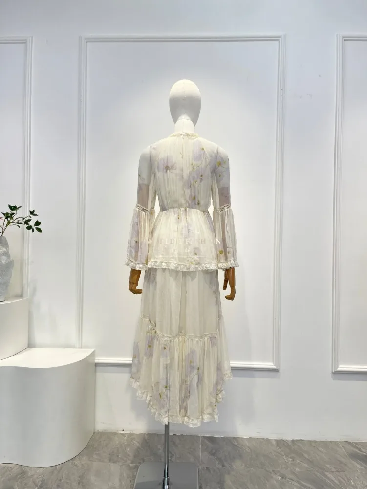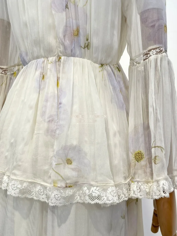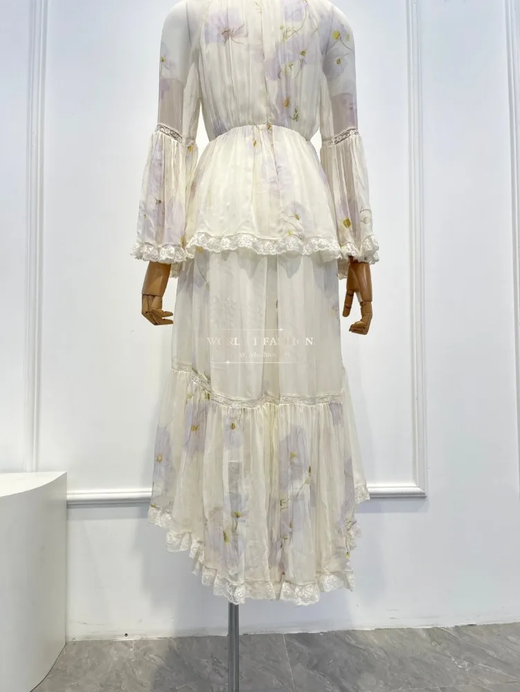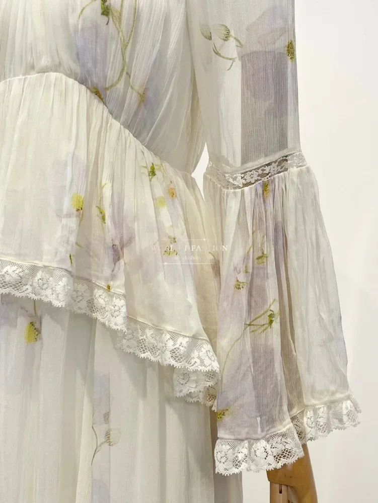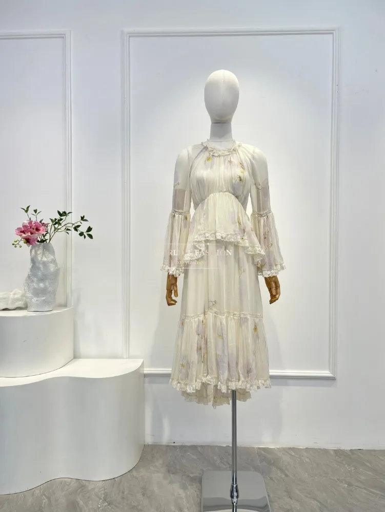 Autunno Nuova Collezione Abiti da Donna 2025 Beige Crema Dais Stampa Floreale Increspature Manica Lunga Orlo Irregolare Abito MidiPensa ad un Regalo Unico e Utile per le Persone a te Vicine!! Regala un buono a partire da € 10,00 a € 300,00