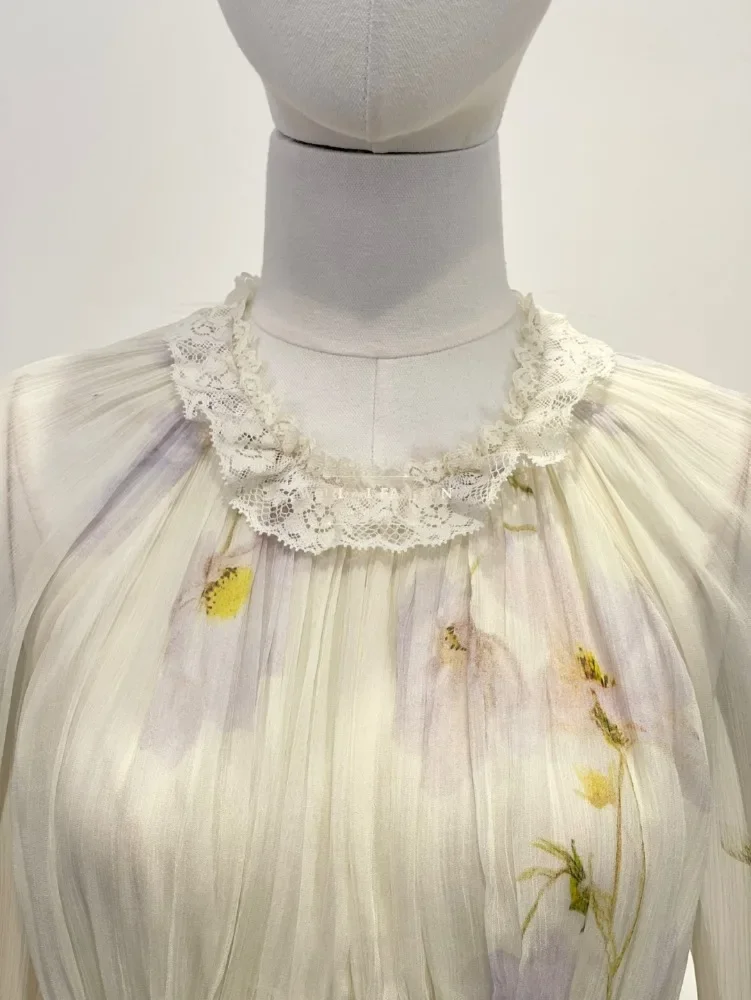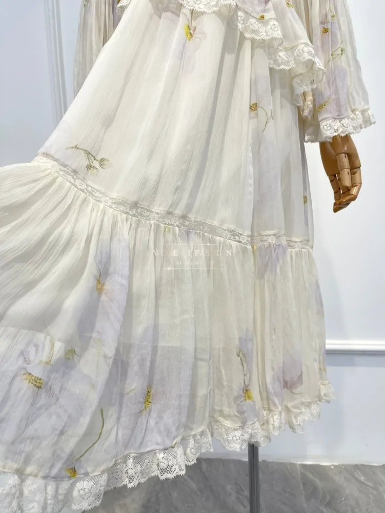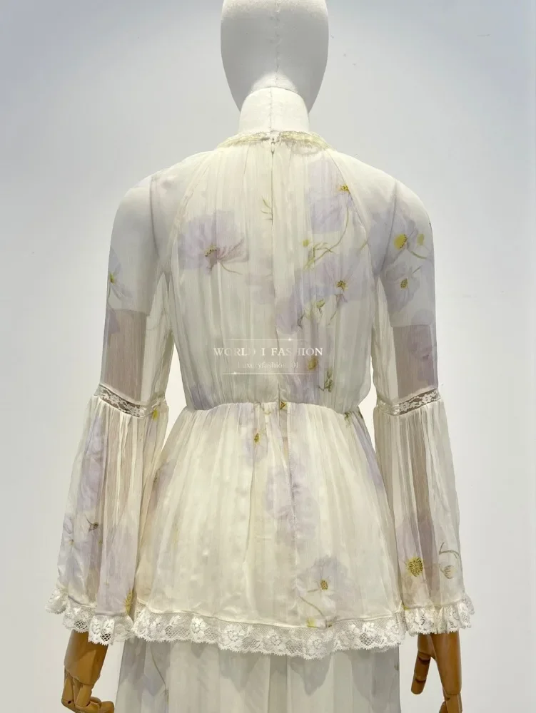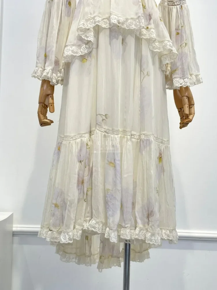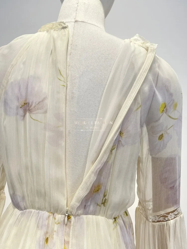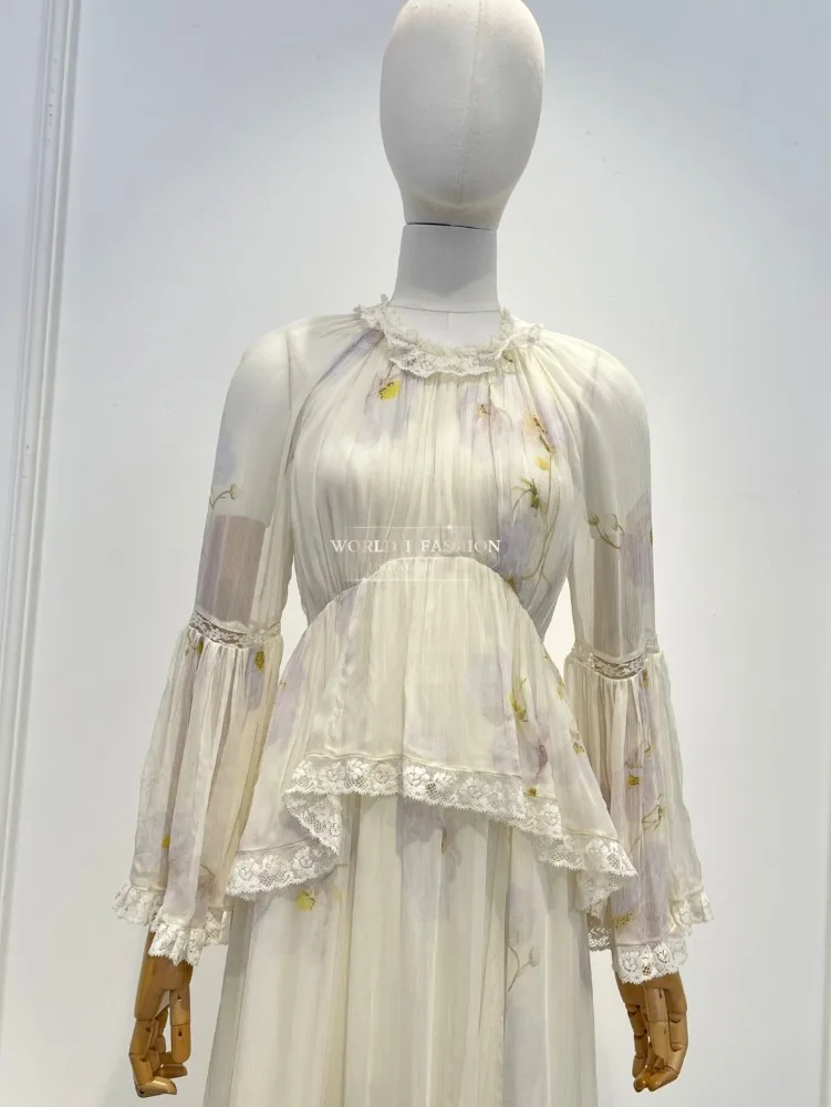 Autunno Nuova Collezione Abiti da Donna 2025 Beige Crema Dais Stampa Floreale Increspature Manica Lunga Orlo Irregolare Abito MidiPensa ad un Regalo Unico e Utile per le Persone a te Vicine!! Regala un buono a partire da € 10,00 a € 300,00