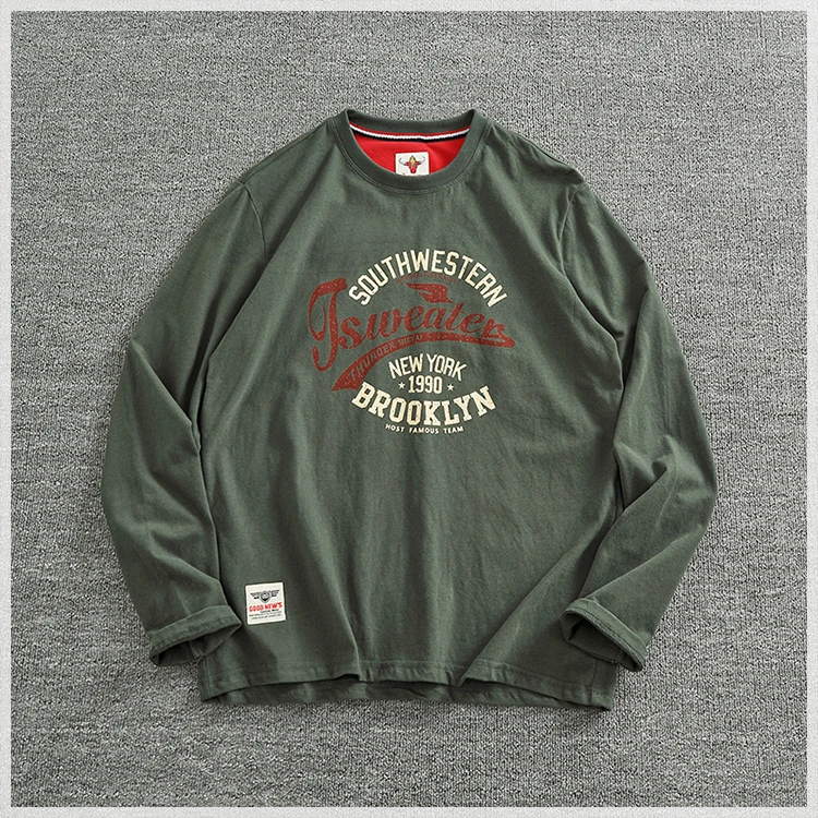 Autunno nuovo americano retrò a maniche lunghe o-collo lettera stampata t-shirt moda uomo semplice 100% cotone lavato Casual Sport top 1Autunno nuovo americano retrò a maniche lunghe o-collo lettera stampata t-shirt moda uomo semplice 100% cotone lavato Casual Sport top