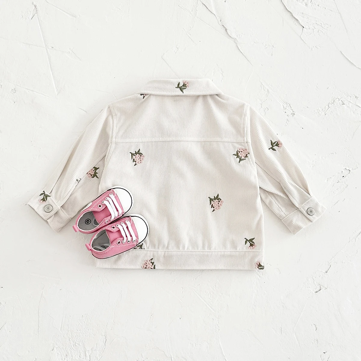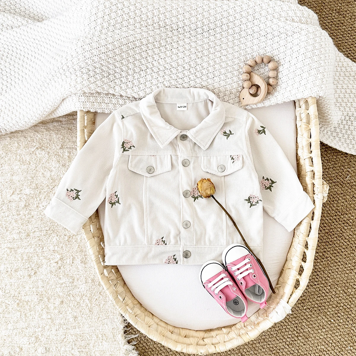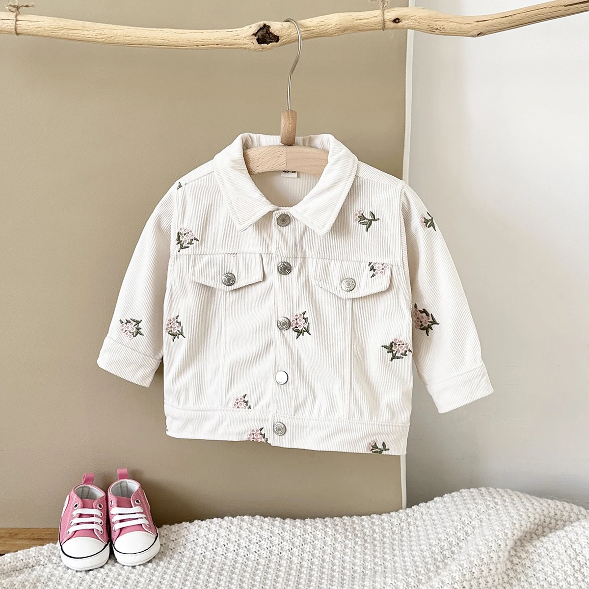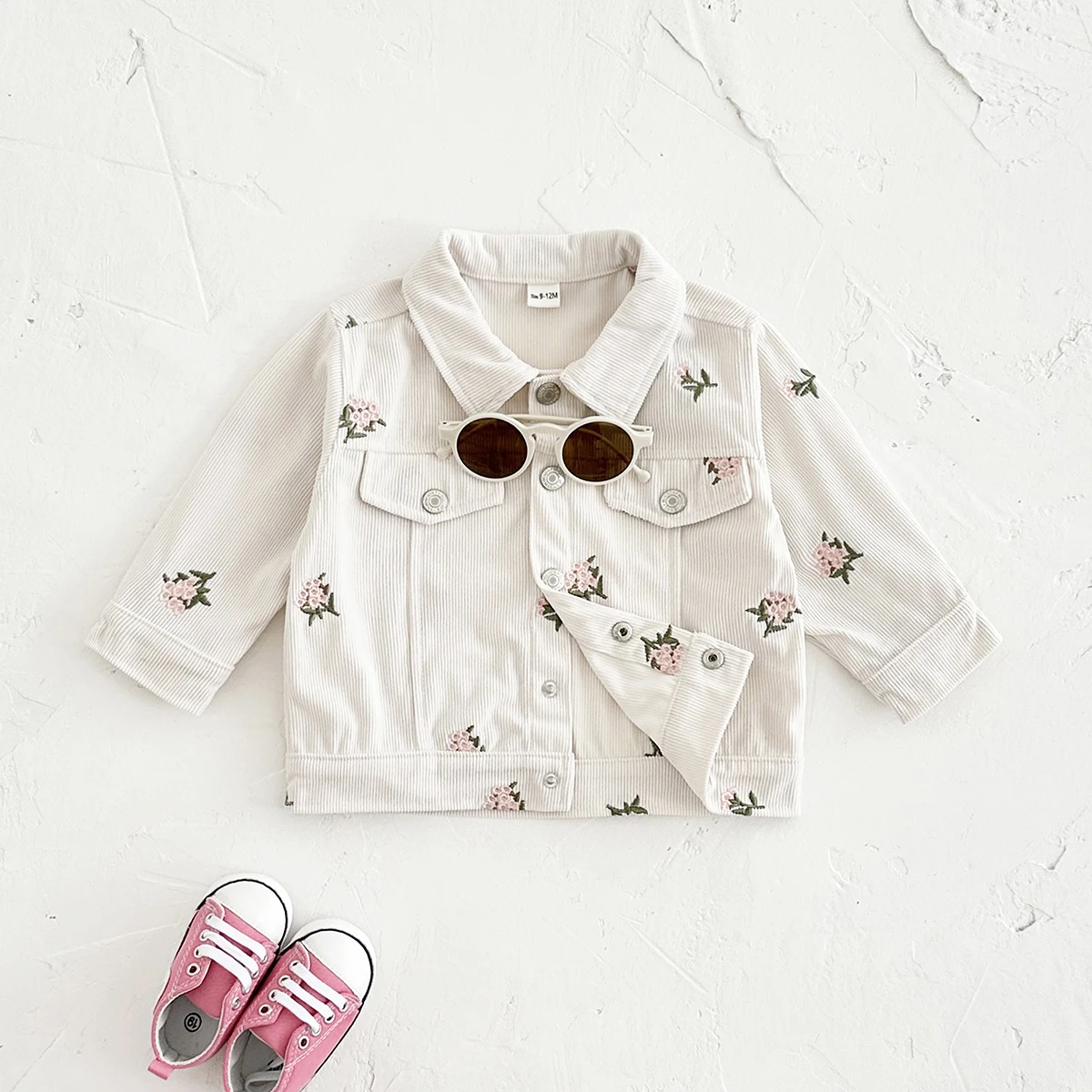 Autunno Vestiti per bambini Cappotto Neonate Giacche Fiore Ricamo Elegante Cappotto sportivo Denim Top Abbigliamento per bambini Ins Abbigliamento da lavoro