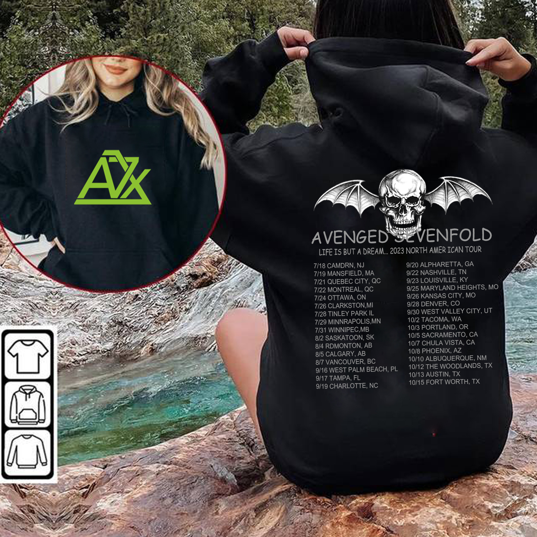 Avenged Sevenfold Life Is But A Dream North American Tour 2023 felpa con cappuccio stampata donna uomo Vintage Band Fans felpa invernale 1Avenged Sevenfold Life Is But A Dream North American Tour 2023 felpa con cappuccio stampata donna uomo Vintage Band Fans felpa invernale